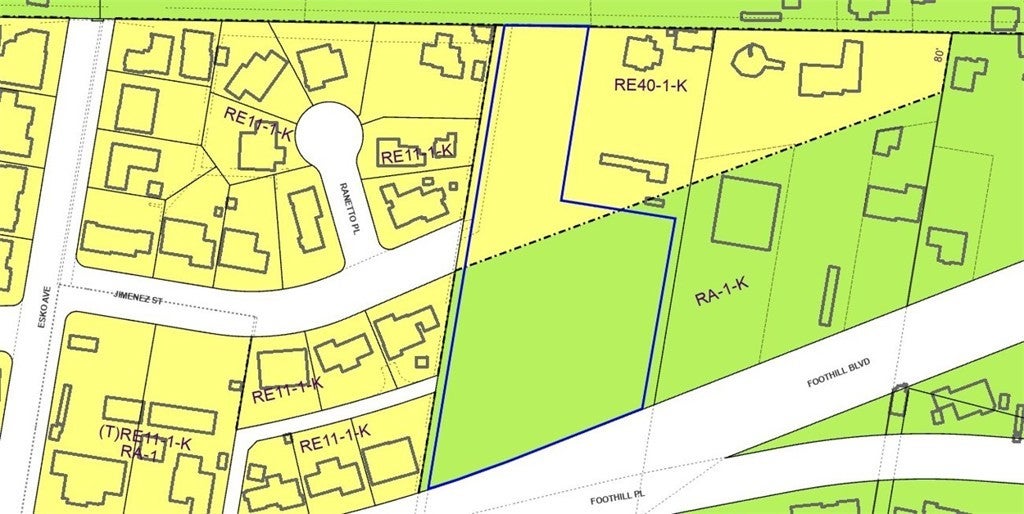Rare 2.5-acre split-zoned parcel with Foothill Blvd frontage. Beautiful piece of land with mature shade trees, bordered by peaceful equestrian properties. Potential for multiple estate or residential homesites subject to City approvals. Large, irregular parcel with zoning boundary already established, providing flexibility in site planning, access, and future development. See ZIMAS zoning map in pictures. Ideal opportunity for developers or owner-builders seeking low-density residential development in an established hillside neighborhood just minutes from Burbank, Glendale and Hollywood. Commercial use or quasi-commercial use may be possible; current owner was able to obtain a conditional use permit to operate their nonprofit therapeutic riding program. Buyer to do their own investigations regarding development potential with the City of Los Angeles. Seller may carry.