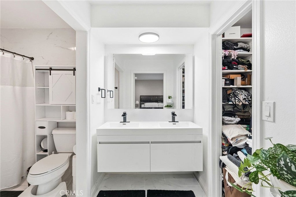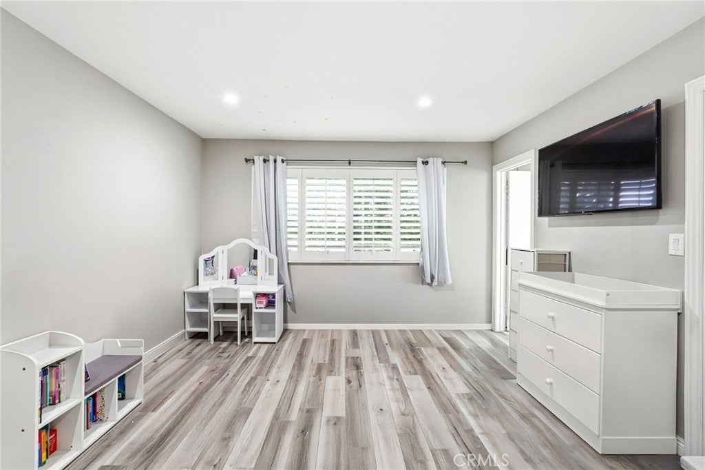 Welcome to this beautifully renovated, move-in ready 2 bedroom, 2.5 bath townhome in the highly desirable Devonshire Village. Expertly renovated throughout, this home blends modern design with functional living. The light-filled living room features wide windows with custom wood shutters, recessed lighting, upgraded gray laminate flooring, wet bar, and a fireplace, flowing seamlessly into the dining area perfect for entertaining. The spacious kitchen boasts quartz countertops, a modern backsplash, glass-front cabinetry, and stainless steel appliances, ideal for cooking and gatherings. Upstairs, enjoy two spacious primary suites, each with generous walk-in closets. The primary suite showcases a fully renovated bathroom with a floating his-and-hers sink, a filtered soft water shower with tub, and marble tile. The second suite offers its own private bathroom with a walk-in shower and ample closet space. A guest half bath is conveniently located on the main level. In-unit laundry, a direct-access two-car garage, and a private patio with TV's hookups perfect for entertaining, morning coffee, outdoor dining, or relaxing evenings. Resort-style amenities including two sparkling pools, a spa, and beautifully landscaped grounds. Perfectly located near CSUN, shopping, dining, freeway access, and the highly regarded Granada Hills Charter High School, this exceptional townhome combines modern upgrades, comfort, and an unbeatable community lifestyle. Priced to sale! A true turnkey opportunity, don’t miss it!