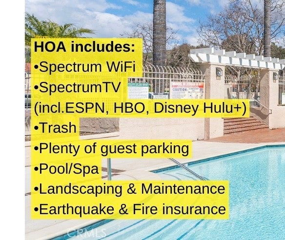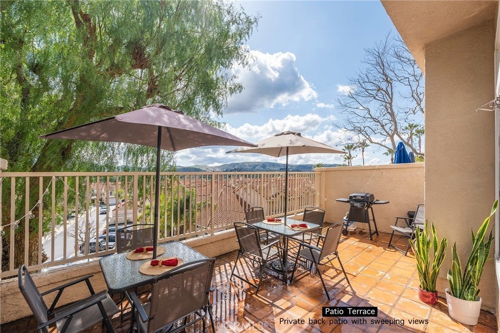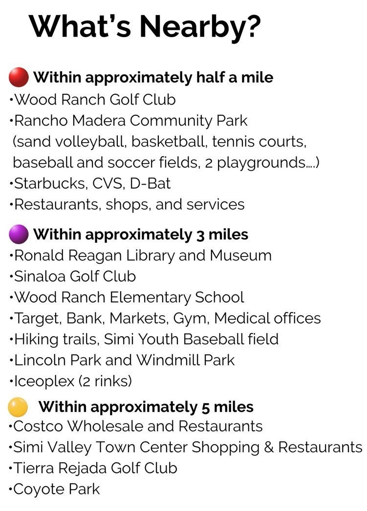 LARGE & FRESHLY painted 2 story townhome at ‘Village on the Green’ in the highly sought after Wood Ranch neighborhood with open layout and sweeping views of mountains and Wood Ranch Golf Course beyond enjoyed from the large private back terrace! Wide Foyer, high ceilings & lots of storage (including a walk in closet, under-stairs closet, and built-ins). Bright spacious kitchen with stainless steel appliances & double sink, granite countertops throughout. Fireplace in open living/dining area - well maintained central heat/air. Guest bathroom tucked away & IN-UNIT Laundry room with ample storage. Cascading stairs with skylight above the upstairs hall. Primary bedroom with vaulted ceiling, views, built-ins, en-suite bathroom, double Kohler sinks, oval soaking tub. Private entrance patio with gate and direct access into the private 2 car garage with oversized water heater and EV charging outlet. Lovely landscaping & grassy areas, large gated pool & spa area. Just down the street from Starbucks, CVS, restaurants and shops, as well as the Ronald Reagan Presidential Library, and Rancho Madera community park with 2 playgrounds, tennis, sand volleyball, and basketball courts and more. Also nearby schools, shopping, dining, several golf clubs, baseball, hiking, and easy access to freeways and natural beauty — INCREDIBLE VA ASSUMABLE loan (with a high balance and 4.75 rate) makes this an amazing opportunity for a VA qualified buyer.