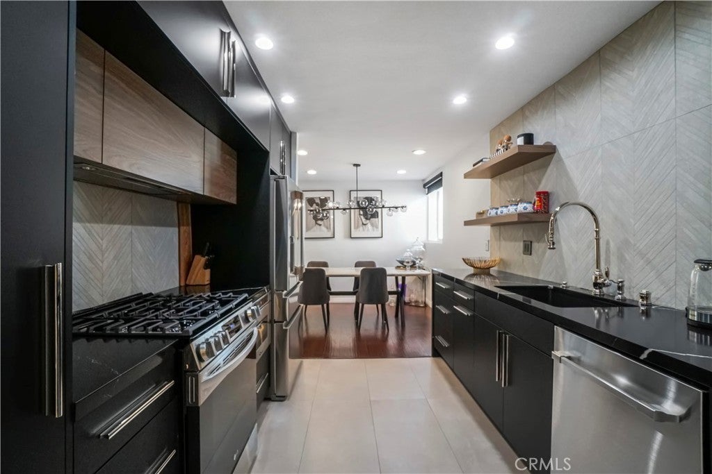 Fully furnished, thoughtfully remodeled 2-bedroom, 2-bath condominium ideally located south of the Boulevard in one of Woodland Hills’ highly desirable residential pockets. Professionally designed, the home offers a refined balance of contemporary finishes and comfortable living. The galley-style kitchen is both stylish and functional, appointed with premium stainless steel appliances and elegant marble countertops. An open and inviting living area flows seamlessly to a private patio, creating an ideal setting for quiet mornings or hosting guests. The primary suite provides a peaceful retreat, complete with an ensuite bath and direct patio access. A well-sized second bedroom features ample closet space, complemented by a beautifully updated guest bathroom. Throughout the residence, recessed lighting, hardwood flooring, and quality finishes add a cohesive, upscale feel. Additional highlights include a full-size in-unit washer and dryer, central air conditioning, custom built-ins for added storage, and a well-planned layout that maximizes space and usability. The secured building is set along a serene, tree-lined street, offering privacy while remaining conveniently close to everything. Enjoy easy access to Ventura Boulevard’s dining and shopping, Westfield Topanga, The Village, Costco, and nearby commuter routes, including the 101 Freeway and scenic Topanga Canyon leading to the coast. Offered furnished, this residence presents an excellent opportunity to enjoy quality living in a prime Woodland Hills location. Private showings available by appointment.