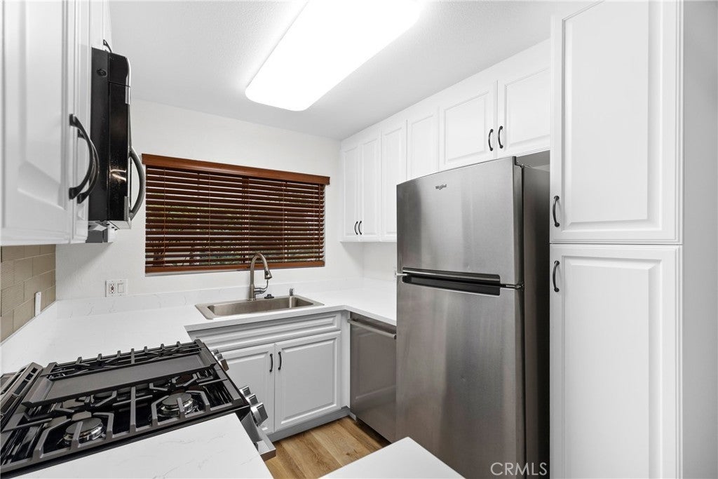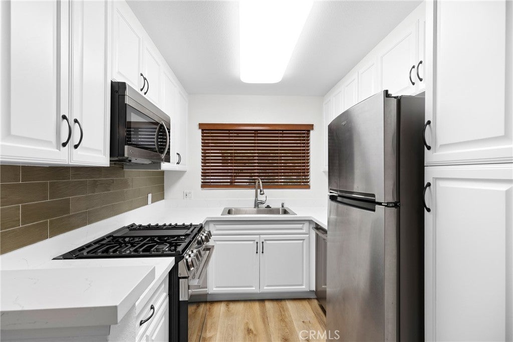 Resort style living in the heart of Warner Center, welcome to The Met! This first floor condo features 2 bedrooms / 2 baths plus a large balcony with 920 square feet of living space. Recently remodeled with new floors, a new stove, new kitchen countertops, updated bathrooms, and fresh paint, this home is immaculate and truly MOVE IN READY!! Beautifully updated throughout, including a kitchen with quartz counters and stainless steel appliances that opens to the living/dining area with crown molding, laminate wood-like flooring, and a fireplace. The versatile floor plan includes a large master suite plus a well-appointed secondary bedroom. In-unit laundry, ample storage, and a large balcony make this home perfect for entertaining or relaxing. Great location within the complex. This unit also includes 2 covered tandem parking spots and guest parking. The MET is the premiere resort-style development in the area—always well maintained with manicured grounds—complete with 24-hour security, tennis courts, pools, fitness center, indoor sports courts, kids play area, and so much more! Located less than a mile from the Westfield VILLAGE. This is a MUST SEE!!