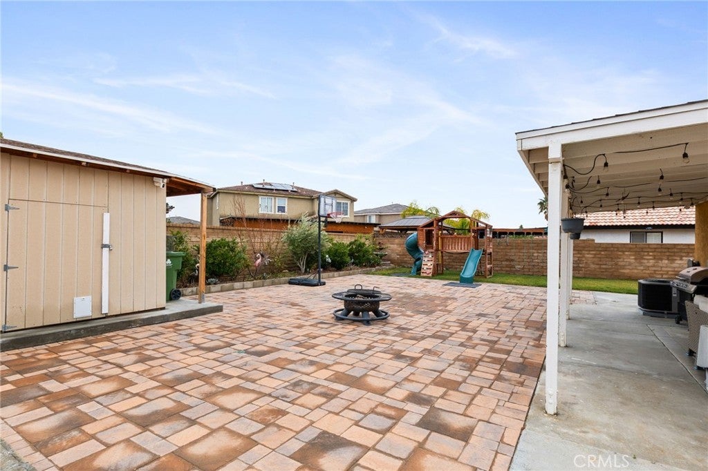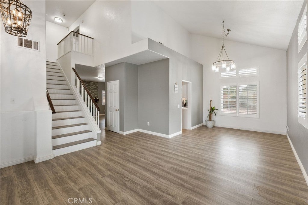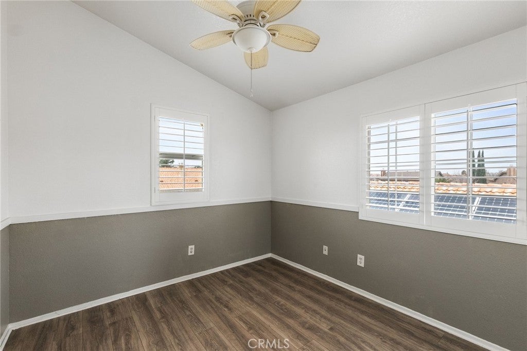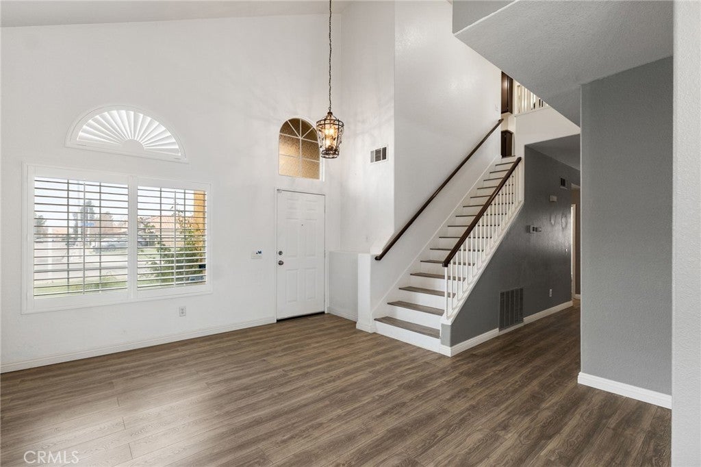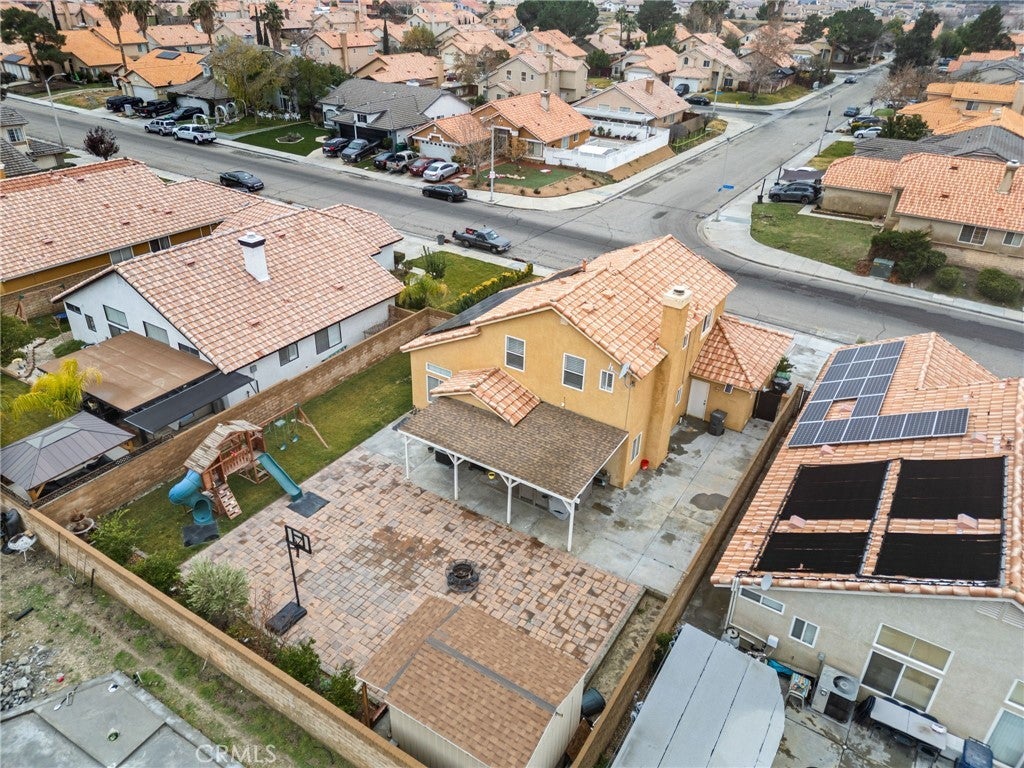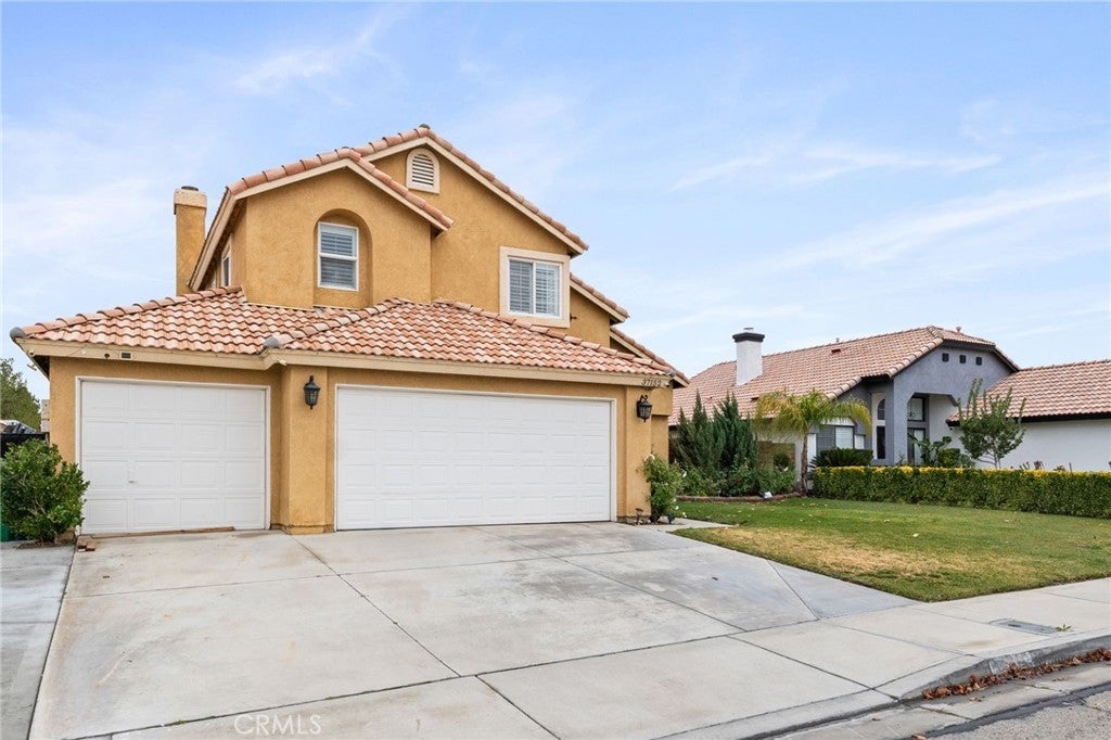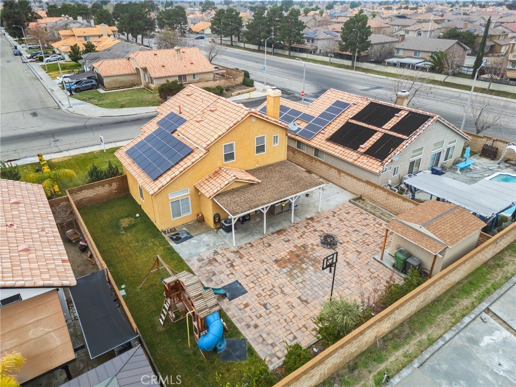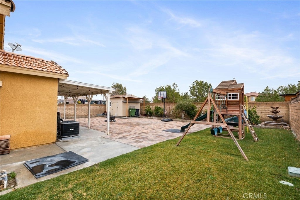 Beautiful 2-Story Family home nestled in a quiet East Palmdale Neighborhood. As you enter the home, you will be greeted with Vaulted ceilings, upgraded flooring, and Plantation Shutters throughout. Kitchen has been recently remodeled with sleek Quartz Countertops, modern white cabinetry with plenty of storage, and recessed lighting! Kitchen appliances include stove/oven, Microwave oven, and wine refrigerator. Family Room has an inviting Fireplace with veneer stone backsplash and French doors that lead to the back yard. Upstairs you will find all bedrooms. The spacious main bedroom has a his-and-hers mirrored closet doors, remote modern ceiling fan, and private bathroom with oval-shaped tub. The other two bedrooms are ideal for a growing family with ceiling fans. Backyard offers perfect space for entertaining guest with covered patio, pavers, and playground set. Large Extra storage shed in the back. Water fountain in the garden. Brick Fence surrounds the entire property. Home has well maintained landscape with irrigation system. Three car garage is spacious and has a newer furnace and water heater. Equipped with Solar panels to reduce energy cost. Lastly, it is located near major shopping centers and schools. Buyer to assume the Solar Panels Loan. Broker and Broker's Agent do not represent or guarantee the accuracy of the square footage, permitted or unpermitted space, BA/BA account, lot size/dimensions, school or other information concerning the conditions or feautures of the property. Buyer is advised to independently verify the accuracy of all information through personal inspection & w/appropriate professionals to satisfy themselves.