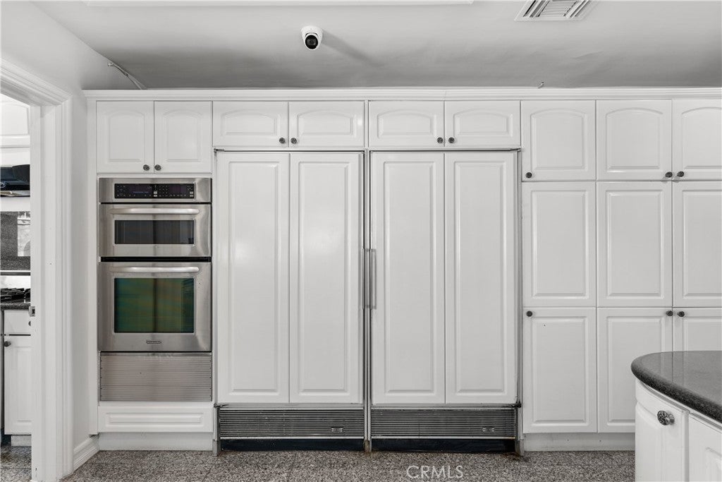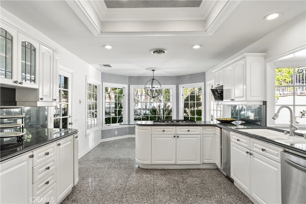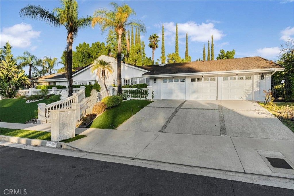 A Perfect 10! This stunning single-story entertainer’s estate boasts an impressive 188 feet of frontage and exquisite upgrades throughout. Step inside to find marble floors with intricate inlaid mosaic detailing, designer faux finishes, elegantly updated bathrooms, custom doors and windows, and stone fireplaces that create an atmosphere of luxury and warmth. The home offers two full kitchens featuring top-of-the-line cabinetry and premium appliances, perfect for hosting or multi-generational living. The expansive primary wing includes a sitting area, walk-in closets, and a spa-like bath. Additional highlights include designer draperies, a newer roof, copper plumbing, and maid’s quarters conveniently located off the three-car garage. Step outside to a resort-style backyard where no expense was spared—featuring a custom pool with glass enclosure, three cascading waterfalls, and a bridge leading to the built-in BBQ area and elevated viewing terrace. The lush, manicured grounds include a large grassy area ideal for entertaining or relaxation. Truly a one-of-a-kind property where luxury, craftsmanship, and comfort come together. You must see it to fully appreciate the detail and design!