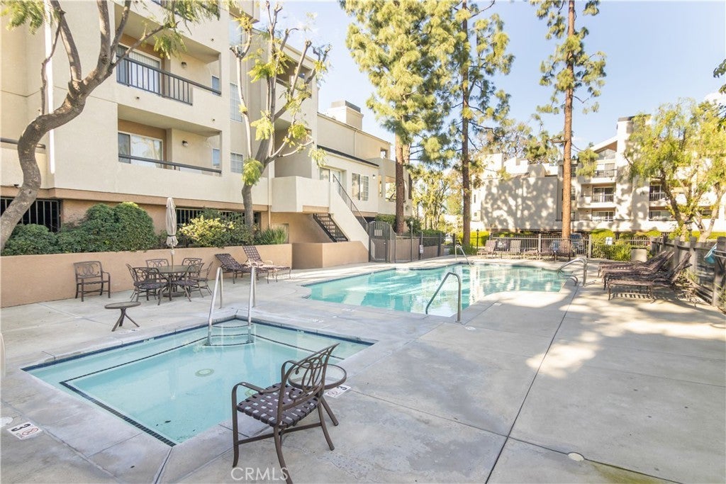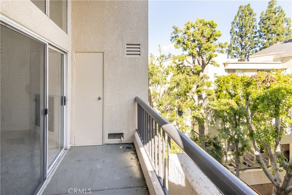 Enjoy resort-style living in this rare 3-bedroom, 2-bath penthouse at the MET in Woodland Hills. This highly sought-after single-level, top-floor condo is tucked away in a quiet setting with serene courtyard and treetop views. The light-filled living room features soaring vaulted ceilings, a cozy fireplace, and a private balcony. The kitchen boasts new appliances, and the spacious primary suite includes mirrored closets. Additional highlights include abundant storage, in-unit laundry, and two tandem covered garage parking spaces. Located in a 24-hour guard-gated community offering four pools and spas, multiple tennis courts, a state-of-the-art fitness center, and 24/7 security patrols. Ideally situated near freeways, public transportation, shopping, dining, movie theaters, parks, and The Village at Westfield Mall.