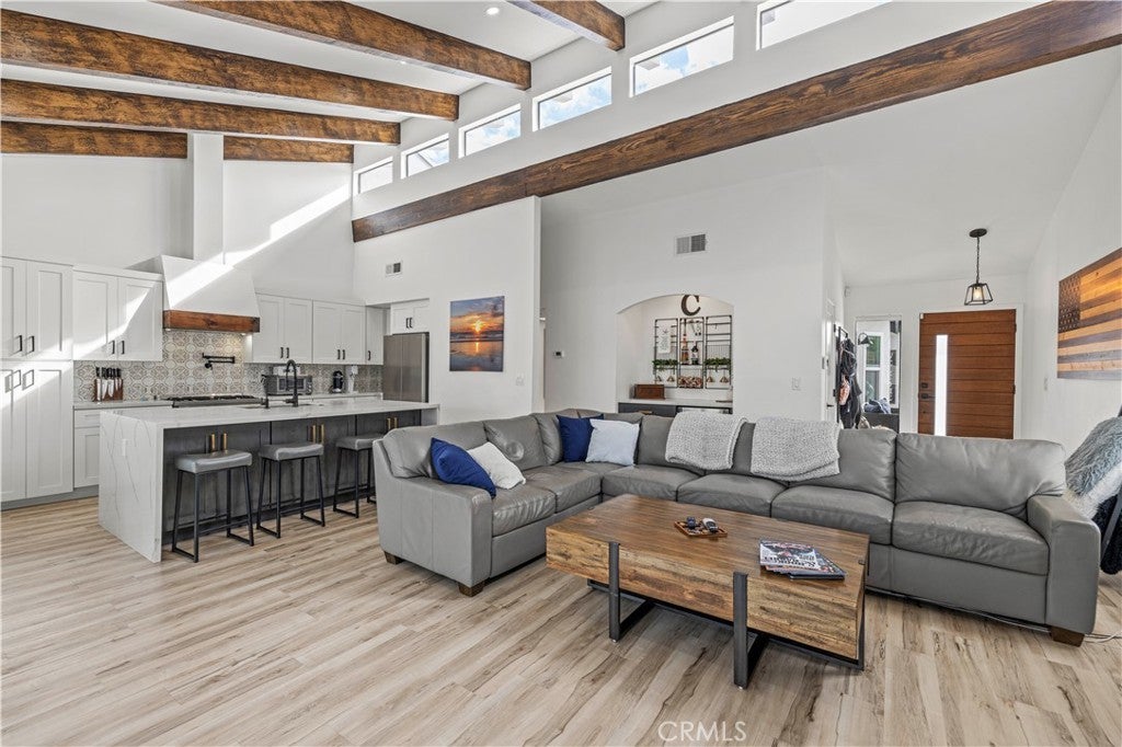 Beamed Ceilings, Breakfast Bar, Built-in Features, Cathedral Ceiling(s), Living Room Deck Attached, Quartz Counters, Recessed Lighting, Primary Suite, Walk-In Closet(s)