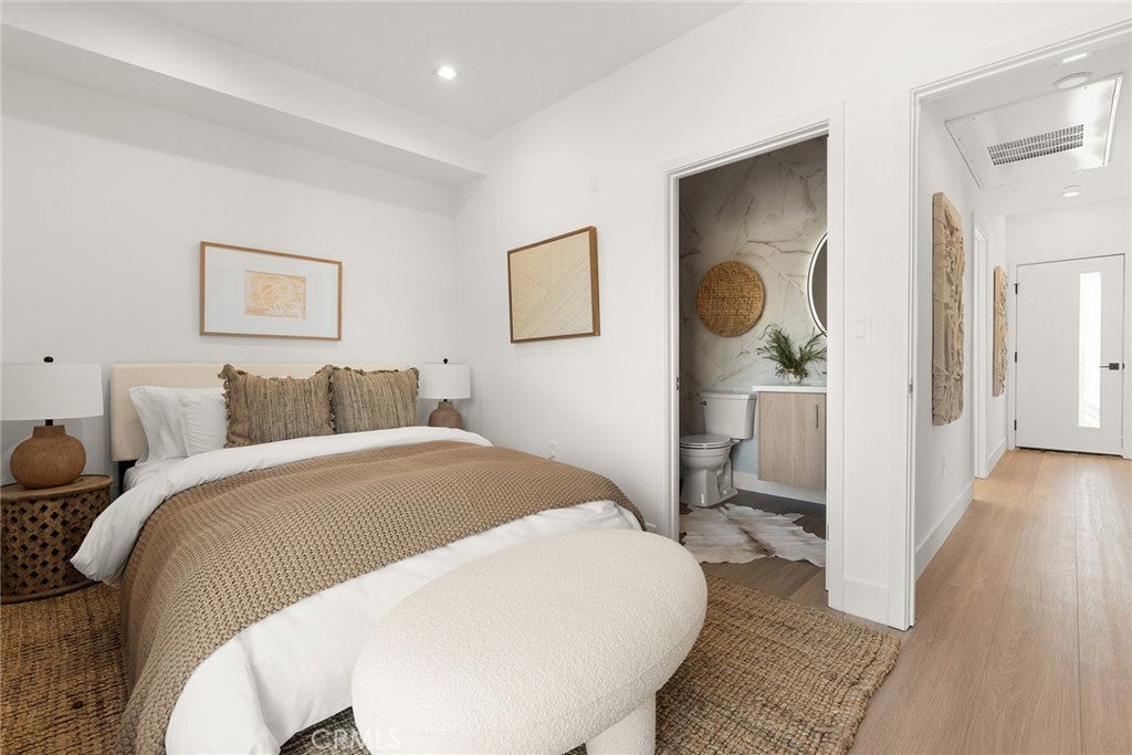 Welcome to 11026 Oxnard St., North Hollywood, CA 91606, a stunning townhome within a luxurious triplex that embodies the perfect blend of elegance and urban convenience. This exceptional unit offers a spacious layout with 3 bedrooms and 3.5 bathrooms, with its own rooftop deck offerin a sophisticated living space. The first level of this tri-level townhome serves as the welcoming entrance, leading to the private attached garage for secure parking and additional storage. As you ascend to the second level, you'll find the heart of the home: a modern open-concept design featuring a sleek kitchen with a large, custom island, beautiful lighting, stainless steel appliances, and ample storage space. The adjacent living areas provide a comfortable setting for gatherings and relaxation, complemented by a convenient bathroom and a washer and dryer for added ease. The third level is dedicated to rest and privacy, hosting three well-appointed bedrooms and bathrooms. The bedrooms offer comfort and convenience, making this unit ideal for families, roommates, or those in need of a home office. The true highlight of this unit is the rooftop sky deck, where you can unwind and take in panoramic views of North Hollywood. Located near the vibrant NoHo West and the North Hollywood Metro Station Development, this residence offers easy access to shopping, dining, and transportation options. Don't miss the chance to make 11026 Oxnard St., your new home in the heart of North Hollywood. Schedule a viewing today and experience luxury living at its finest.