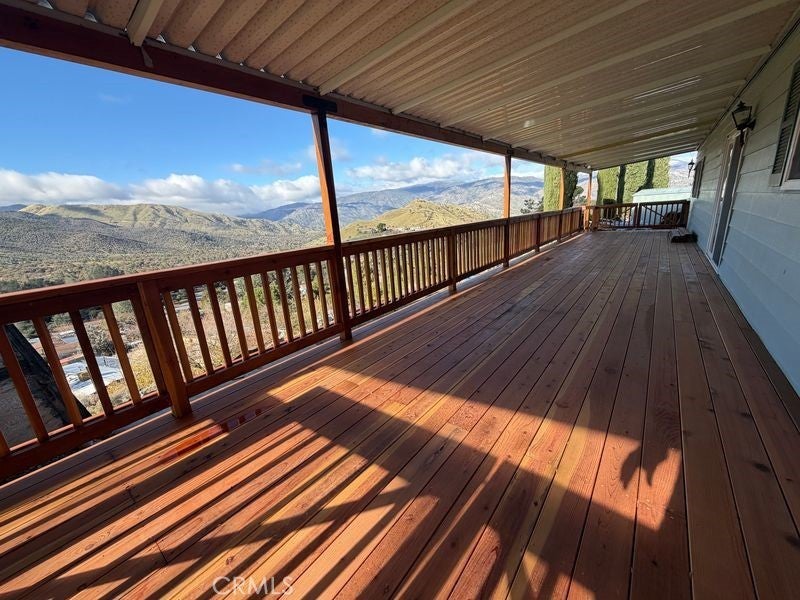 Enjoy life up in the Kern Valley. This home is great for a Weekender or Full Time. Huge 1,440 Square Foot mobile home - Two bedrooms, two bathrooms! Fantastic open bright floorplan Amazing Views from most of the rooms! High Ceilings! Central AC! Family room has a wood burning stove to warm up the house. There is also a dining area with a built in hutch. The kitchen has lots of cabinets, great cooking area for the cook of the family. The Master bedroom has an attached full bath. Huge Laundry room with side by side washer/dryer and 2nd refrigerator too! There is a large outside that's great for entertaining with a covered deck length of the home. The property has an attached nice size two car garage w 220 service. Large property with plenty of room for RV and several more cars too! Amazing neighborhood – Best area of Bodfish! Easy drive and located at the top of the valley on a cul-de-sac, minutes to town, near Lake Isabella and the river. Great condition! Pride of Rentership!