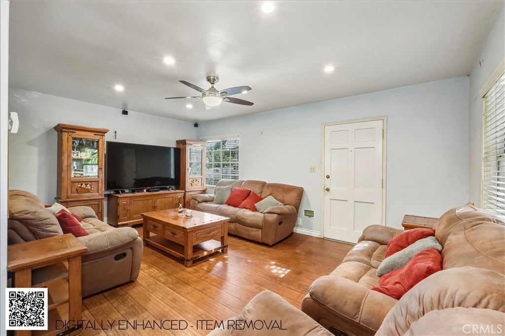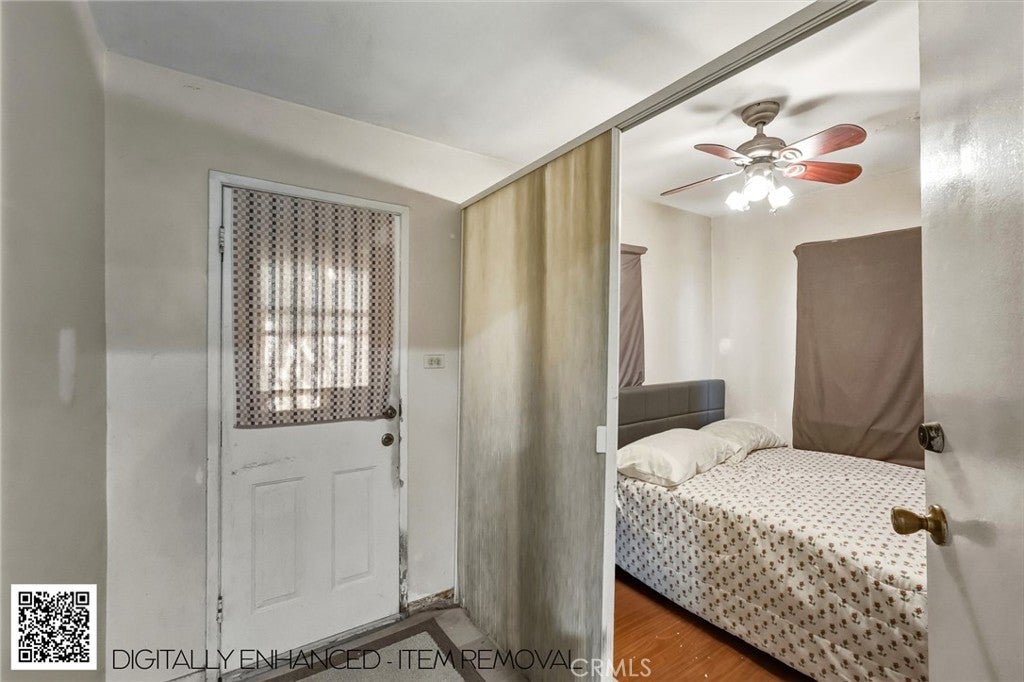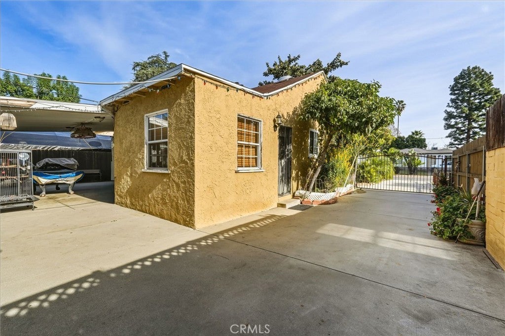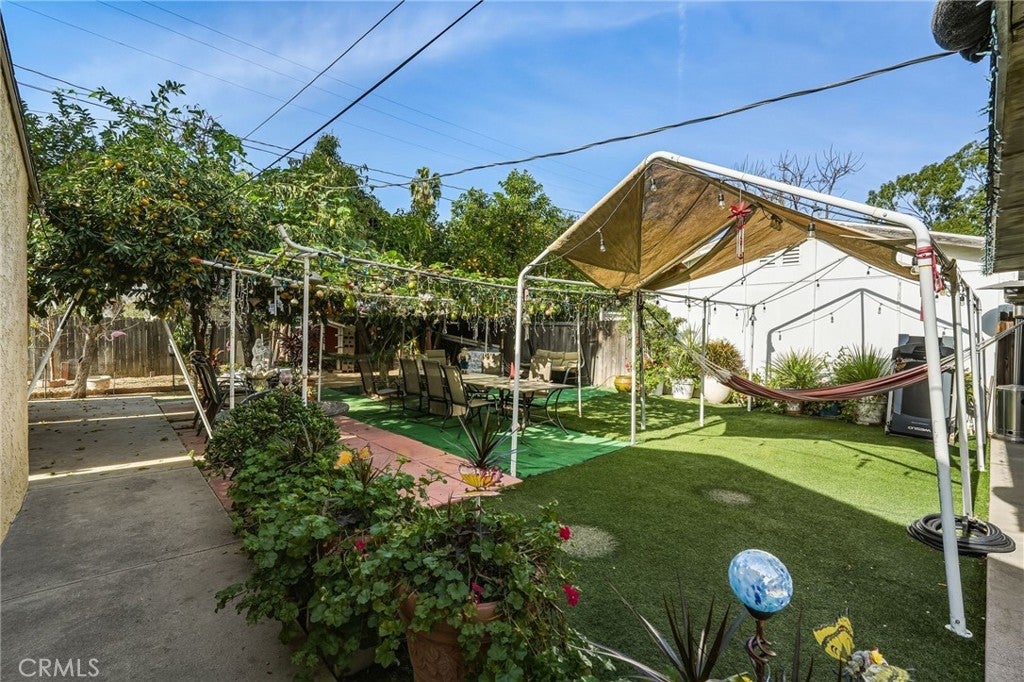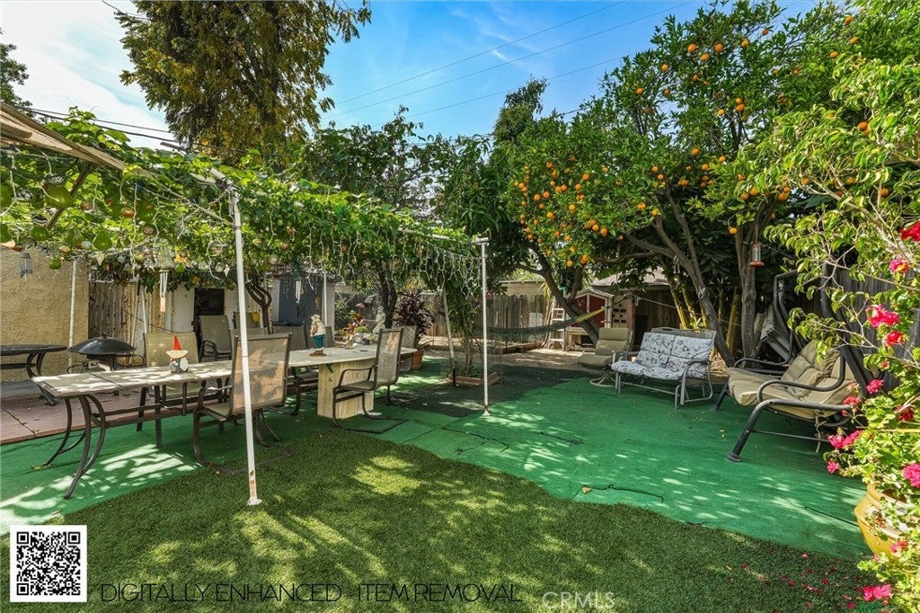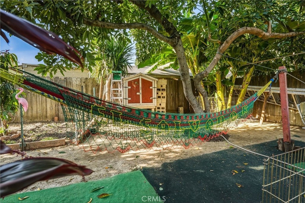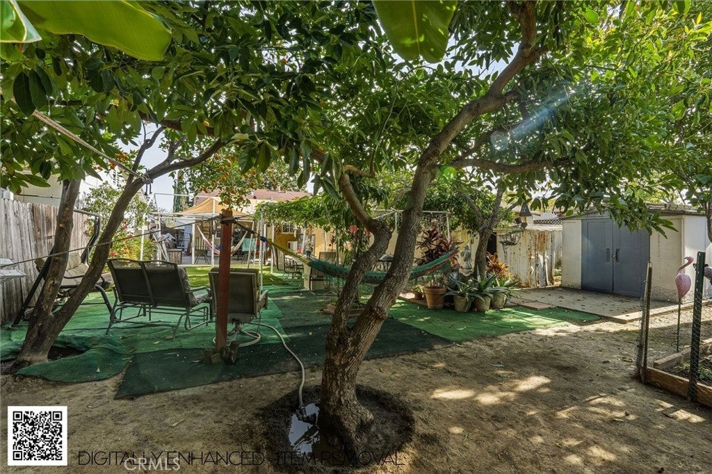 Tucked away on a quiet street in a desirable Sherman Oaks neighborhood, this charming buttercup-yellow traditional bungalow offers incredible potential and endless possibilities. Inviting curb appeal welcomes you with mature shade trees and palms leading to the front door. Inside, the living room features recessed lighting and flows seamlessly into the adjacent dining area, creating a warm and welcoming space. The kitchen offers wood cabinetry, a double sink, stainless steel appliances, and a window overlooking the rear yard. A former service porch has been converted into an additional bedroom, ideal for visiting guests, a home office, or flexible living space. Down the hall, you’ll find two bedrooms with recessed lighting and closet storage, along with a full hallway bathroom. Whether you’re searching for a fixer or a place to call home and make your own, this property is full of opportunity. Step outside to the rear yard—an owner-described “oasis.” A long driveway leads to a detached garage with endless possibilities. Enjoy the covered patio, open-air hammock areas, and a lush collection of fruit trees including mandarin, nectarine, avocado, guava, mango, blood orange, banana, passion fruit, squash, and pepito. The low-maintenance yard also features a chicken coop and vegetable garden area (not currently in use). Relax and unwind in this tropical-style setting, perfect for enjoying the summer months. Centrally located near local shops, restaurants, cafes, and offering easy freeway access, this Sherman Oaks gem is ready for its next chapter. Some of these images have been digitally altered for marketing purposes. scan the OR code to access the original, unaltered photos.