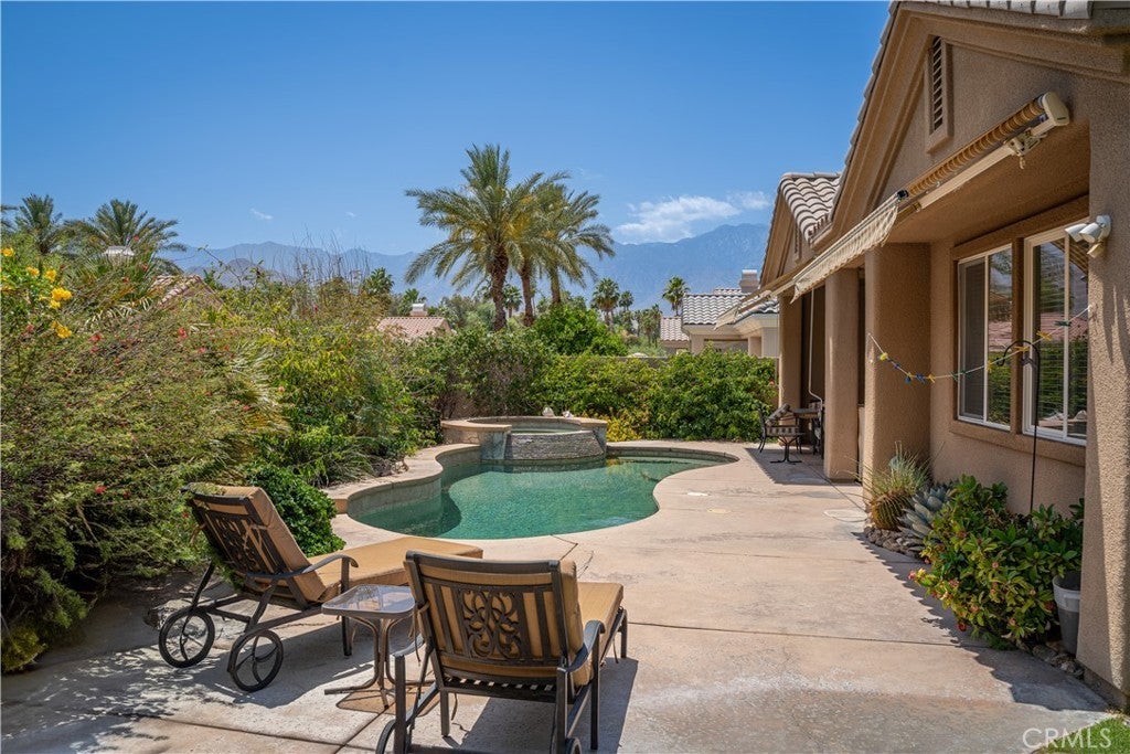 Price reduction to encourage a quick sale. Welcome to Vista Mirage, a very peaceful gated private community of 64 Mediterranean style homes built in 2002, With over 2000 sq. ft. of living space, open floor plan, a refreshing pool and spa with mountain views. This Desirable Plan 2 Model in Vista Mirage, a gated enclave of 64 homes built in 2003 with 2,071 Sq. Ft. has 3 bedroom and 2 full baths, a great room with a fireplace, formal dining room and living room and a separate laundry room. The Master Suite is 15 x 17 and has a walk-in closet as well as a spacious bathroom with double sink vanity and a separate shower and a bathtub. The home sets on an elevated lot with fabulous mountain views. The lot is Fully landscaped with attractive plants and fruit trees on automatic sprinklers. This wonderful home has stunning mountain views from the south-facing backyard, with no neighbors behind you. The home is located on a quiet interior street and great interior location of the subdivision . This beauty is light, bright, open and spacious with three-bedrooms, two-baths. There is nice separation from the master bedroom and two other guest bedrooms.