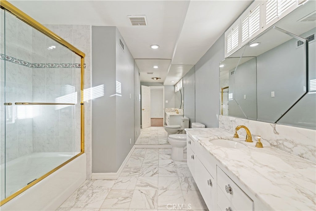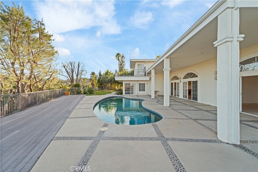 Tucked away at the end of a quiet cul-de-sac in the prestigious Royal Oaks of Encino, this gated residence offers privacy, elegance, and breathtaking panoramic views of the city and surrounding hills. Spanning approximately 4,942 square feet, the home features 6 bedrooms and 6 bathrooms, thoughtfully designed for both comfortable everyday living and effortless entertaining. Upon entry, expansive living and family rooms are bathed in natural light, each framed by endless views that create a seamless connection between indoors and out. A formal dining room sets the stage for memorable family gatherings and holiday celebrations. At the heart of the home is a cook’s kitchen, complete with a large center island and a casual nook area—ideal for morning coffee or informal meals while enjoying the scenery. The primary suite is a true retreat, offering generous proportions, a private balcony, and sweeping panoramic views—perfect for unwinding at sunrise or sunset. The home’s flexible layout includes four bedrooms on the first floor, two of which are en-suite, while the additional rooms can easily serve as a maid’s quarters, guest room, or home office. An additional en-suite bedroom on the second floor provides privacy for guests or extended family. Step outside to a resort-style backyard, where a pool, seating areas, and dramatic hill and city views create the ultimate backdrop for entertaining or simply relaxing as the sun sets over the skyline. Ideally located within the coveted Lanai Elementary School district, the property offers easy access to the Westside, Ventura Boulevard, and major freeways—combining tranquility with everyday convenience. (Some images have been virtually staged for illustrative purposes only.)