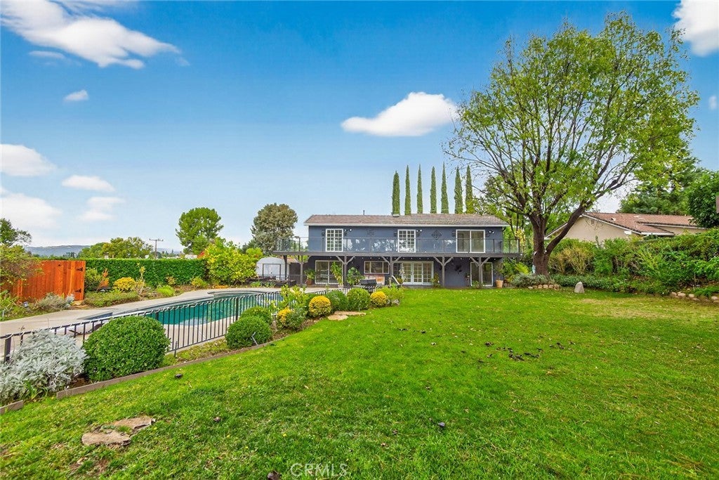 Located on one of Mulwood’s premier cul-de-sac streets, this super clean 5BR/3BA home offers an exquisite yard space—larger and far more usable than most, with a massive grassy lawn, beautiful saltwater pool, covered patio, mature landscaping, and wide open views that create a wonderfully spacious outdoor setting. If you are seeking an outdoor entertainment space this is the home you have been looking for. Inside the freshly updated interior offers high ceilings in a large living room complete with fireplace. There is bright open feeling throughout. The kitchen with new appliances opens to the family room for easy, connected flow. Both access the rear yard through glass sliders. The dining area is great for large dinner parties or can be used as additional flex space. The large primary suite features a private view deck with mountain vistas and excellent closet space. All bedrooms have great light and nice closet space. Additional highlights include new paint, stone counters and tile, a 3-car garage, plenty of storage, walking distance to all three Calabasas schools (K–12), close to the Calabasas commons and a quick 15-minute drive to Malibu.