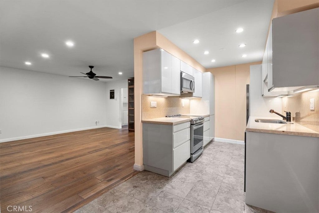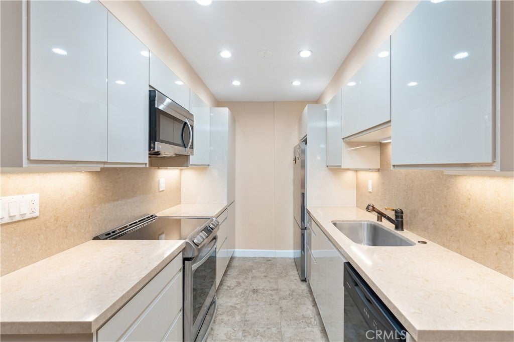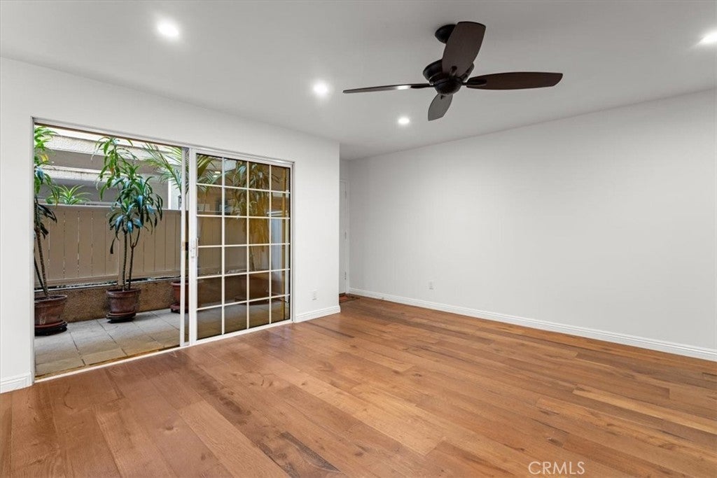 Stylish and updated 1-bedroom, 1-bath condo in a prime Santa Monica location just 14 blocks from the beach. The spacious living area features hardwood floors, recessed lighting, a gas fireplace, and sliding glass doors that open to a private enclosed patio surrounded by lush palms. The modern kitchen includes frameless high-gloss cabinetry, quartz countertops, stainless steel appliances, a farmhouse sink, and under-cabinet LED lighting. The bathroom features a marble-tiled walk-in shower with built-in bench, quartz vanity, and a premium toilet. Additional highlights include generous closet space, designer lighting, and quality finishes throughout. Community amenities include 24-hour controlled access, a fitness room, gated garage parking with storage, secured entry, and a bike room. HOA covers water, gas, and trash. Close to Montana Avenue, Erewhon, Third Street Promenade, parks, Brentwood, UCLA, and St. John’s Hospital! This home offers a turnkey lifestyle in one of Santa Monica’s most desirable neighborhoods.