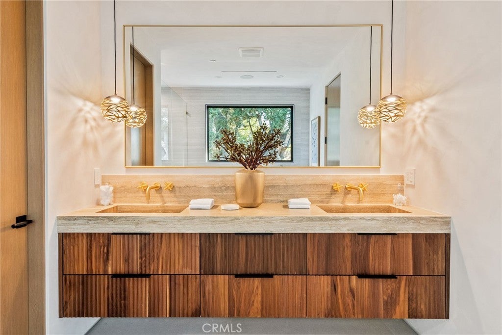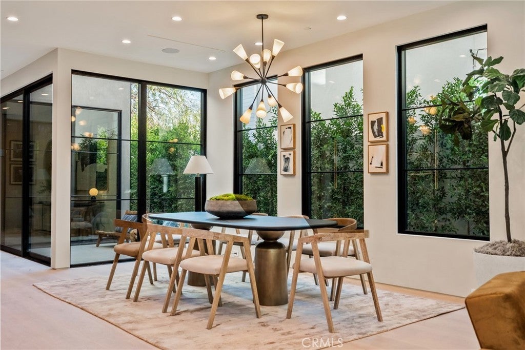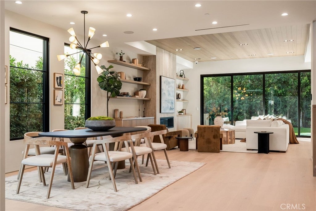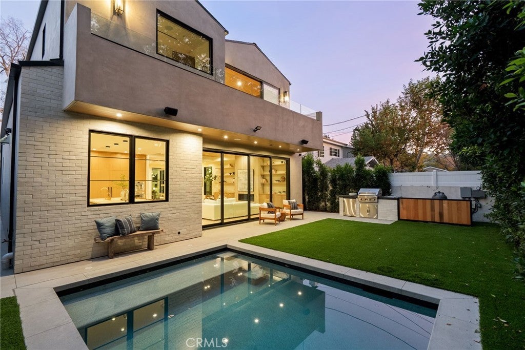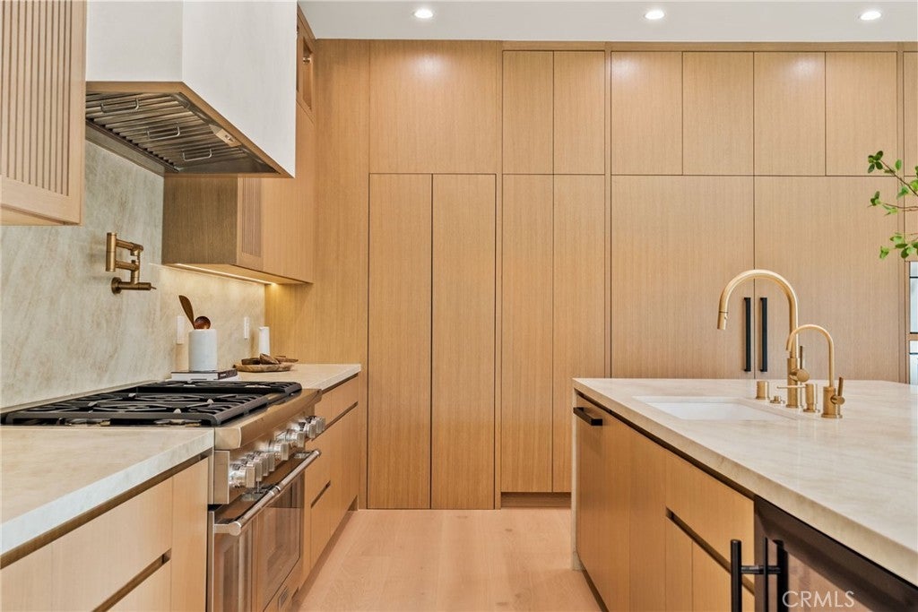 Situated on a quiet, tree-lined street in the desirable Beeman Park neighborhood of Studio City, this stunning modern residence blends luxury, functionality, and effortless indoor-outdoor living. Offering 5 bedrooms and 4.5 bathrooms, the home features an oversized guest bedroom on the main level, while four spacious en-suite bedrooms are located upstairs, including a serene primary suite with a private balcony. Designed for both everyday comfort and upscale entertaining, the open-concept floor plan showcases European oak floors, a dramatic floor-to-ceiling stone fireplace, and extensive custom wood paneling, built-ins, and cabinetry throughout. A dedicated office adds flexibility for today’s lifestyle. The gourmet kitchen is a true showpiece, featuring Taj Mahal stone, a custom lime-washed stove hood, Thermador appliances, two sinks, two dishwashers, a walk-in pantry, wine fridge, and thoughtful modern finishes. Ferguson lighting accents the home with warmth and sophistication. The primary suite is a private retreat with a beverage center, spa-inspired bath with lime-washed finishes, and his-and-hers closets. Additional highlights include a Control4 smart home system, integrated speakers, security cameras, and a sleek flush garage door. Outdoors, enjoy a peaceful courtyard, pool, and seamless indoor-outdoor living complete with an outdoor Turbo grill, sink, and refrigerator—perfect for entertaining or relaxing in total privacy. Ideally located within the sought-after Dixie Canyon School District, and just moments from Beeman Park, the Shops at Sportsmen’s Lodge, and some of Studio City’s most popular restaurants and amenities, this exceptional home offers modern luxury in a prime location.