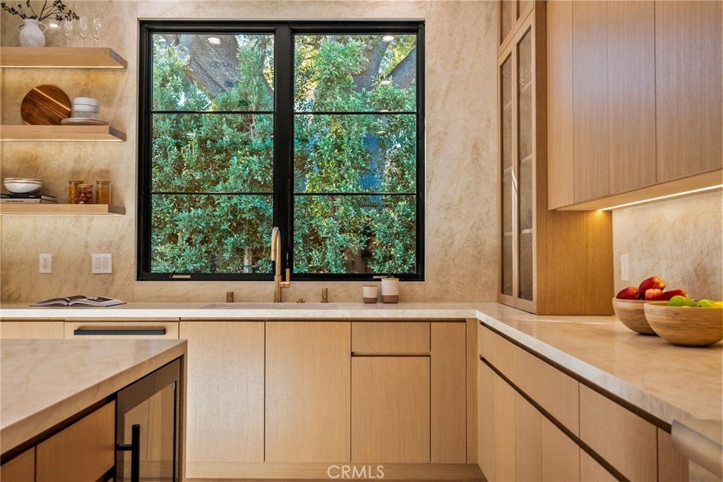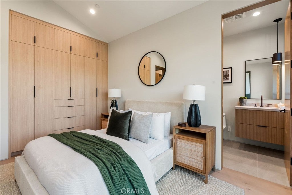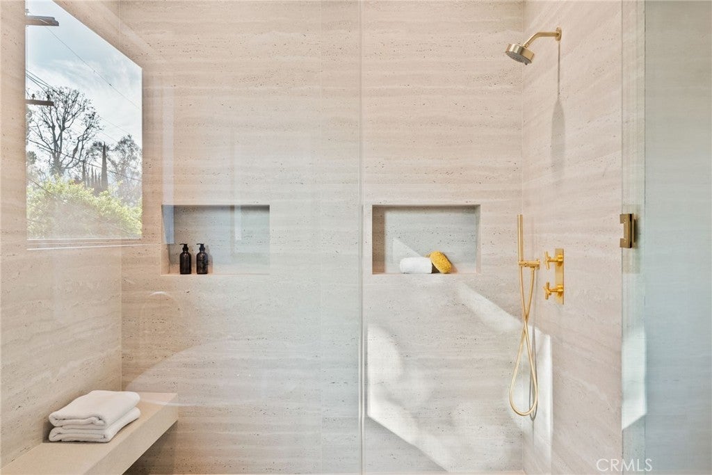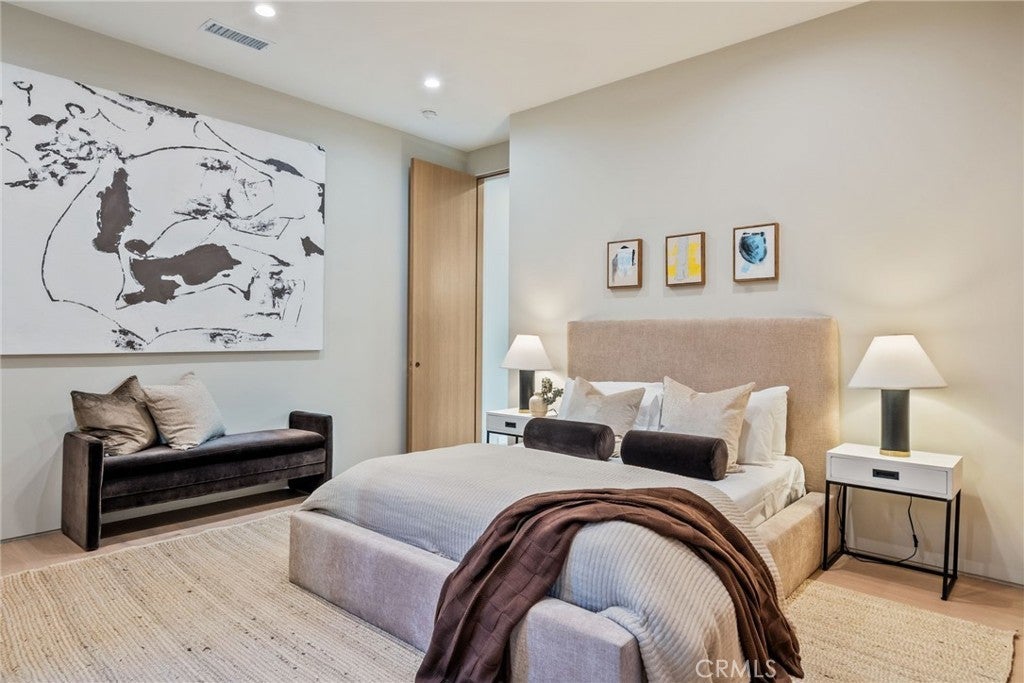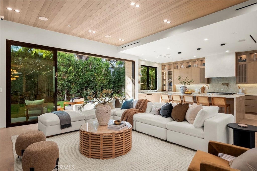 Situated on a quiet, tree-lined street in the desirable Beeman Park neighborhood of Studio City, this stunning modern residence blends luxury, functionality, and effortless indoor-outdoor living. Offering 5 bedrooms and 4.5 bathrooms, the home features an oversized guest bedroom on the main level, while four spacious en-suite bedrooms are located upstairs, including a serene primary suite with a private balcony. Designed for both everyday comfort and upscale entertaining, the open-concept floor plan showcases European oak floors, a dramatic floor-to-ceiling stone fireplace, and extensive custom wood paneling, built-ins, and cabinetry throughout. A dedicated office adds flexibility for today’s lifestyle. The gourmet kitchen is a true showpiece, featuring Taj Mahal stone, a custom lime-washed stove hood, Thermador appliances, two sinks, two dishwashers, a walk-in pantry, wine fridge, and thoughtful modern finishes. Ferguson lighting accents the home with warmth and sophistication. The primary suite is a private retreat with a beverage center, spa-inspired bath with lime-washed finishes, and his-and-hers closets. Additional highlights include a Control4 smart home system, integrated speakers, security cameras, and a sleek flush garage door. Outdoors, enjoy a peaceful courtyard, pool, and seamless indoor-outdoor living complete with an outdoor Turbo grill, sink, and refrigerator—perfect for entertaining or relaxing in total privacy. Ideally located within the sought-after Dixie Canyon School District, and just moments from Beeman Park, the Shops at Sportsmen’s Lodge, and some of Studio City’s most popular restaurants and amenities, this exceptional home offers modern luxury in a prime location.
