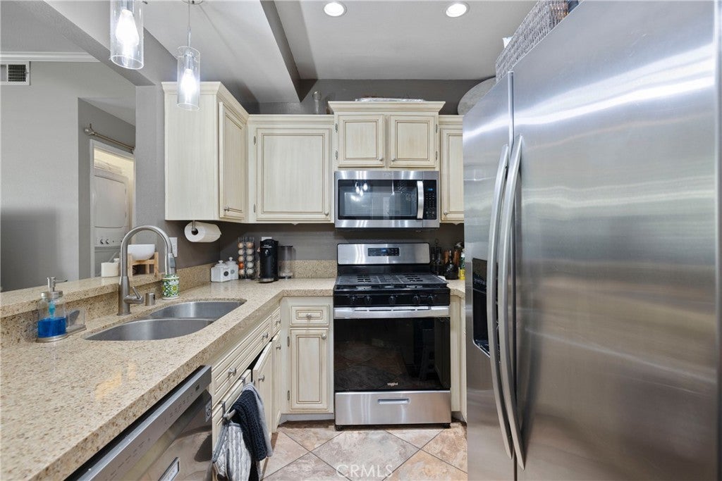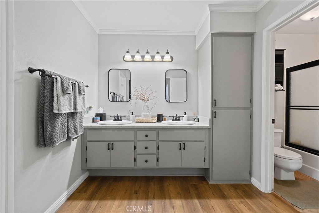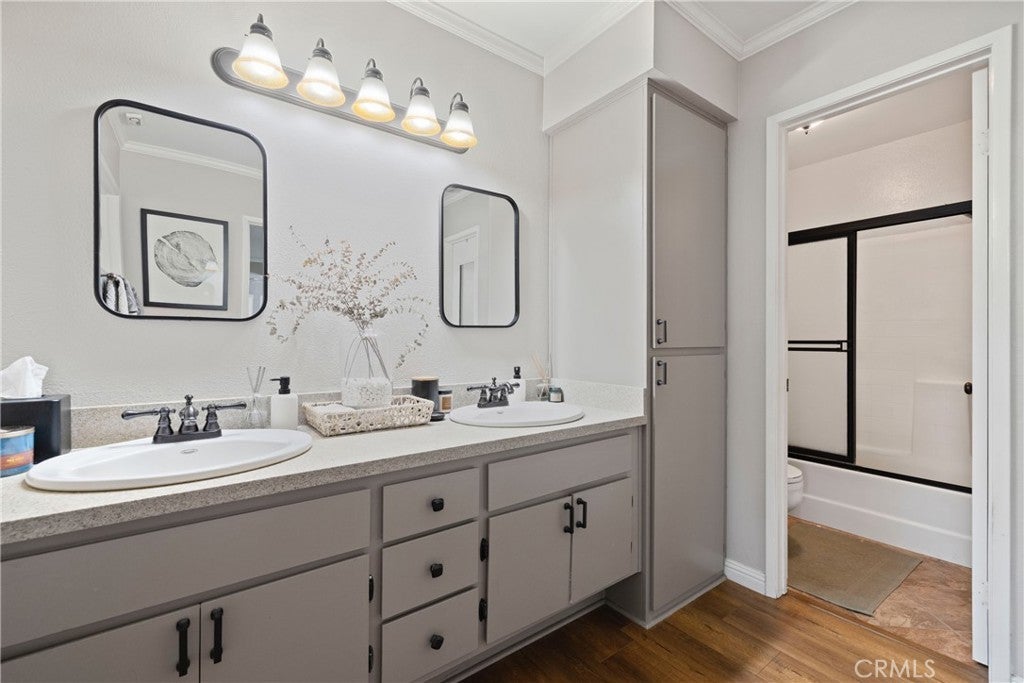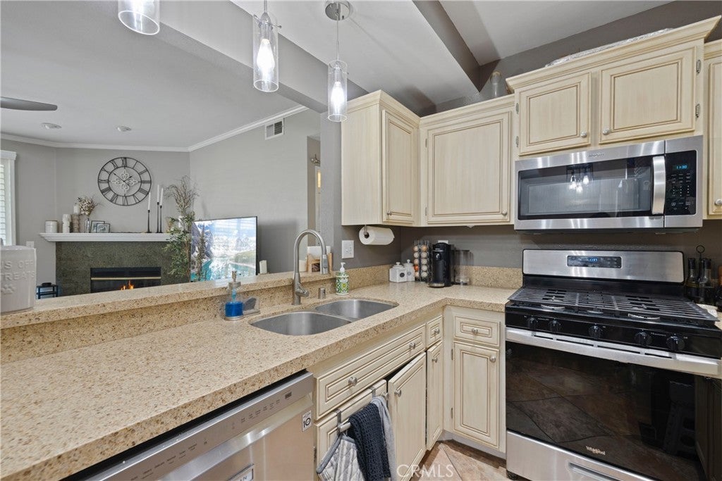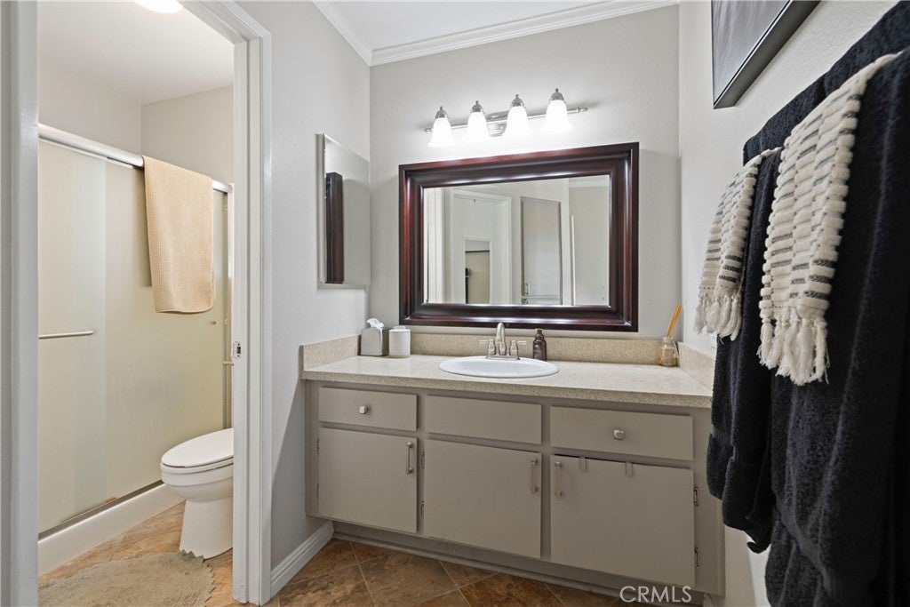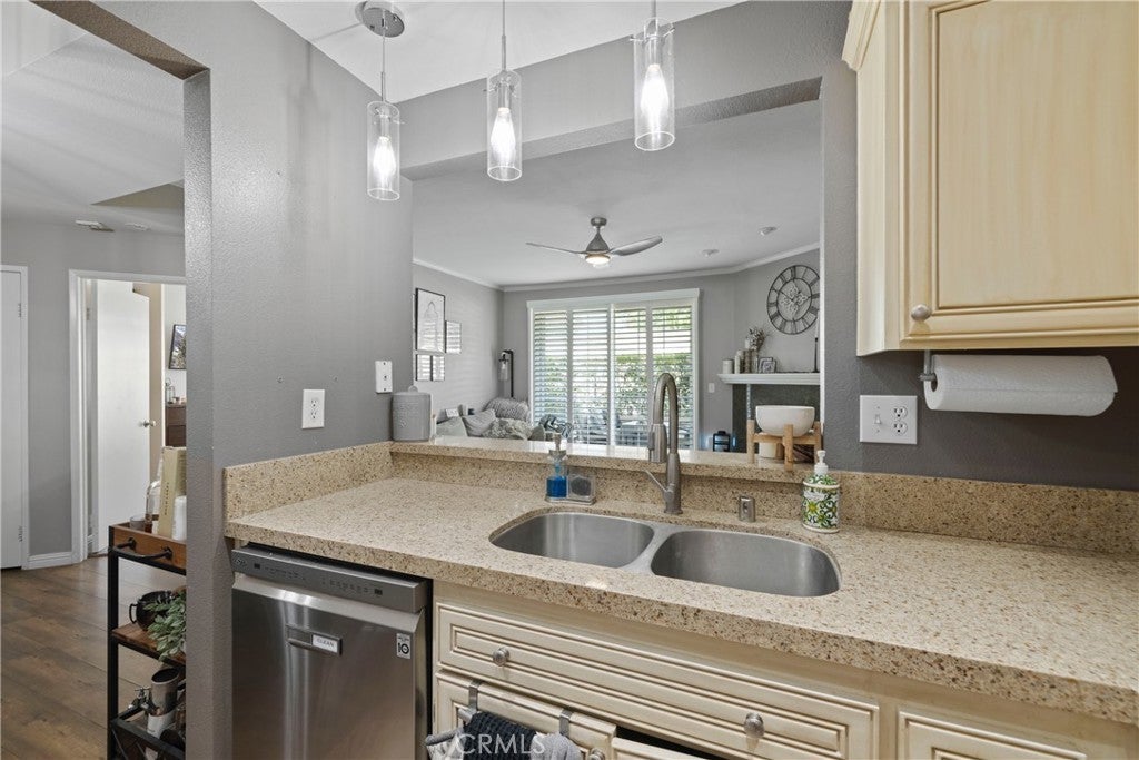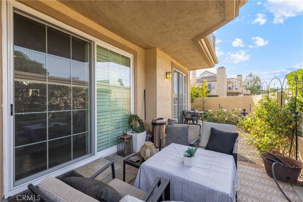 Welcome to this incredible lower level condo in the heart of Valencia. This beautifully updated and meticulously maintained condo boasts dual masters, updated flooring, plantation shutters, and in unit laundry. This home is located in a prime location in the community and has ample guest parking as well. As you enter you will be greeted by an inviting floor plan that is both spacious and functional. The kitchen features painted cabinetry with granite countertops and stainless steel appliances. The master suite includes a walk in closet and a large master bedroom with a sliding door to the patio. The secondary master includes a walk in closet, dual sink vanity and sliding door to the patio as well. This unit comes with a large wrap around patio with trees and space for gardening. Also included is a detached 2 car garage. The HOA includes beautiful greenbelts and natural vibes, pools, and access through the back to get onto Valencia Blvd directly. This home sits in a great neighborhood and is located in a commuter friendly location near top rated schools, restaurants, shopping, transit, hiking, and so much more.