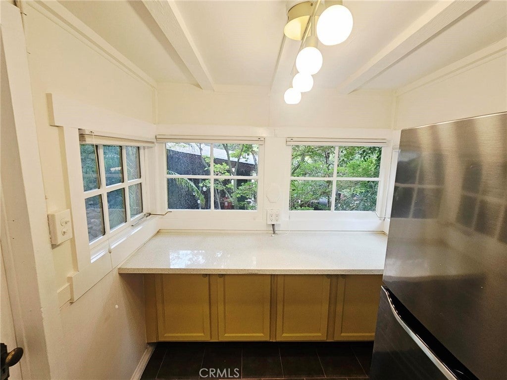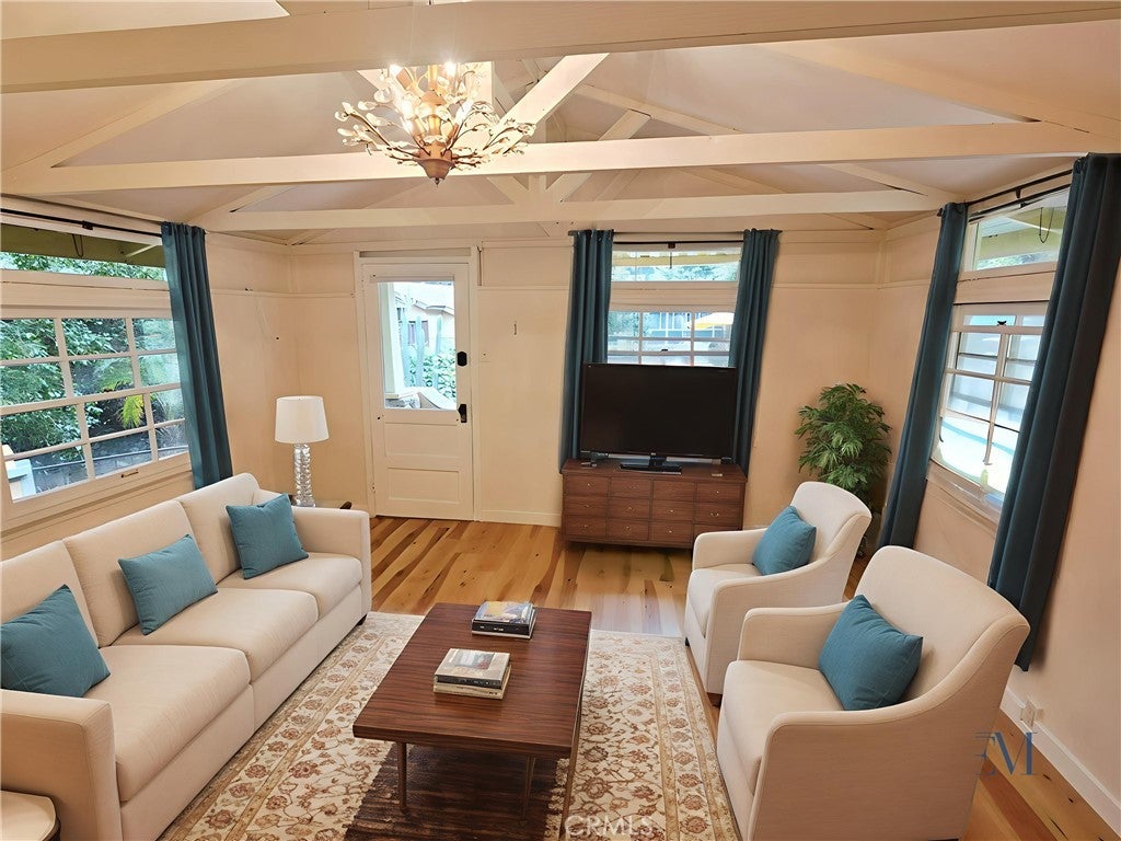 Discover this charming 1-bedroom, 1-bathroom bungalow nestled in the heart of Sierra Madre Canyon. Surrounded by lush greenery, peaceful ponds, and the gentle sounds of Santa Anita Creek flowing through the property, this home offers a true escape into nature. Step inside to an open, airy layout featuring a large glass door that fills the living space with natural light and frames picturesque views. The cozy living room boasts exposed white beams, adding character and warmth, while the updated kitchen comes complete with all appliances—ideal for cooking and entertaining. Enjoy year-round comfort with wall AC and heat, and make the most of the spacious front patio, perfect for relaxing or hosting guests. A bonus small room makes an excellent office or creative space, and underneath the home, you'll find generous under-house storage with washer/dryer hookups and plenty of space for bikes or gear. Outside, unwind on the front porch swing and take in the calming creek views. Pet-friendly and surrounded by hiking and mountain biking trails, this canyon gem is the perfect blend of comfort, nature, and adventure. Optional parking is available for an additional fee. Welcome home to your peaceful canyon getaway—where every day feels like a retreat.