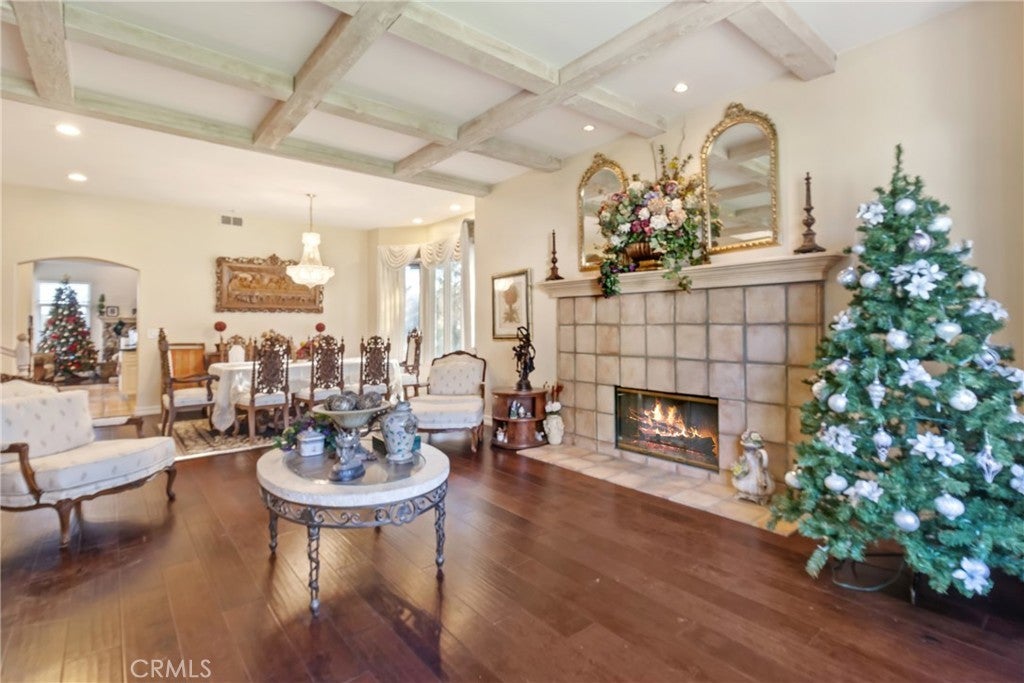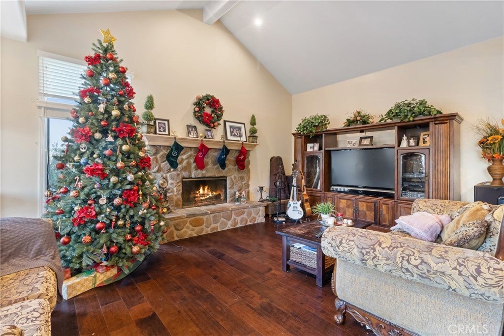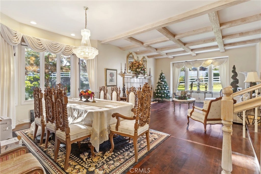 Nestled in a private community on a horse zone, this custom-built home is a true gem. With its great curb appeal and large corner lot, it's the perfect place to call home. The interior is just as impressive, exposed wood beams living room with huge fireplace that leads to a formal dining area. The chef's kitchen is equipped with stainless appliances and a center island, and opens to a spacious vaulted high ceiling family room with fireplace and a bar. The home also features one spacious vaulted ceiling bedroom with a bathroom, plus an office and powder room downstairs, and three vaulted ceiling bedrooms upstairs, including a spacious primary suite with fireplace, large walk-in closet, and balcony with a city view. Barn is being used as a storage, The oversized 3 car garage and long driveway provide plenty of room for cars and possible RV parking space.