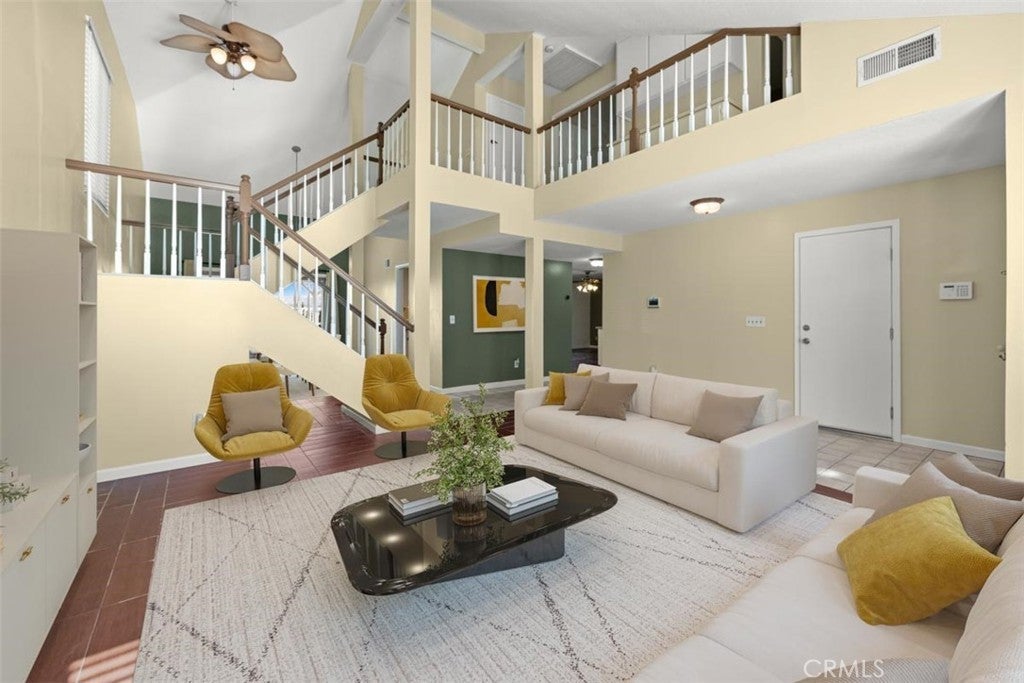 View, View , View & serenity! Ready to go 2 story at the top of quiet cul-de-sac in Shadow Run. Great Moorpark location near schools, parks , shopping & restaurants. Fully paid solar system. Big rooms. Lots of upgrades. Family room + fireplace. 3 car garage with flooring. Pad out front + large gate to rear area. All furnishings shown are virtually staged & digitally generated