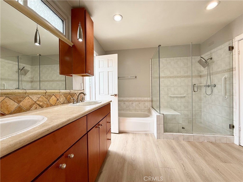 Welcome to paradise! On an oversized corner lot in one of the best parts of Woodland Hills sits this incredible home, full of both beauty and utility. The main house has four bedrooms, a massive chef's kitchen, brand new floors throughout, along with high ceilings and tons of natural light. Three separate entrances lead to the backyard oasis, where you'll find the impressive barbecue, two fire pits, the relaxing hot tub and enormous pool. The attached guest house contains two more bedrooms and a full bath, kitchen, as well as its own laundry hookups and entrance! This versatile flex space can be your perfect in-law suite, a dynamic creative studio, or the ideal home office. As if the house itself weren't enough, it's located in the famed El Camino school district and is just minutes from the Calabasas Commons and Topanga Mall. Come see this apex property before it's gone!