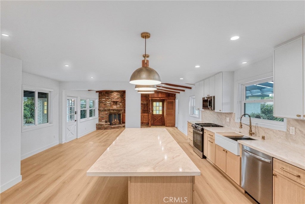 Step into this beautifully updated 4-bedroom, 2-bath home offering 1,574 sq. ft. of comfortable, remodeled living space on an expansive lot. Tucked at the end of a quiet cul-de-sac in a desirable neighborhood, this property features a gated entry with exceptional flexibility—ideal for RV parking, extra vehicles, equipment storage, or hobbies. Inside, you’re welcomed by an inviting living room with brand-new flooring, charming built-ins, and a striking brick fireplace that adds warmth and character. The layout flows effortlessly into the formal dining area, perfect for gatherings and entertaining. The completely renovated kitchen showcases quartz counter-tops, sleek new cabinetry, a breakfast bar, and all-new appliances. Just beyond, the informal living room offers a relaxed atmosphere with its vaulted ceiling and exposed beams, creating an open and airy feel. Down the hall are four comfortable bedrooms, with both bathrooms thoughtfully renovated to blend modern style with timeless design. Outdoors, enjoy multiple patio areas surrounded by mature trees, generous yard space, garden areas, —ideal for outdoor living and versatility. This rare leasing opportunity combines updated interiors, abundant outdoor space, and flexible use options—all in a peaceful, well-established neighborhood. A truly special place to call home!
