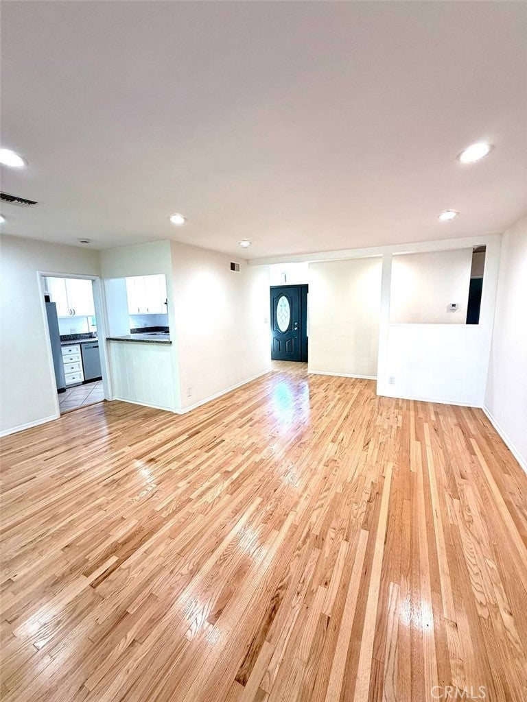 Beautiful south of the Blvd house on a quiet street in Woodland Hills, this single-story 3-bedroom, 2-bath home is 1320 sq ft of living space on a 6,252 sq ft lot. The open living and dining area features hardwood floors, recessed lighting, and a painted brick fireplace, with sliding glass doors opening to a covered rear patio for all indoor and outdoor entertainments. The kitchen includes white cabinetry, granite countertops, gas cooktop, double ovens, stainless steel refrigerator, New laundry and water heater. Its open to the dining area. This is offers a primary bedroom plus two additional bedrooms and two fully updated baths, including one with glass-enclosed shower and another with dual-sink vanity and tub/shower. The backyard is grassy and landscaped, providing space for outdoor enjoyment. Attached two-car garage and wide driveway offer for easy parking. Conveniently located near Ventura Blvd dining, The Village, Westfield Topanga, and easy access to canyons and the 101 freeway. High academ ranked LAUSD schools. The best area to live and you can call it home.