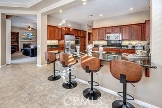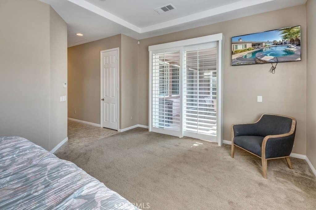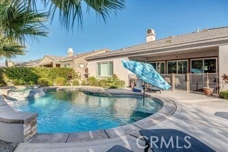 Located in a gated community north of I-10 at Golf Club Drive, this Marquese Plan residence offers exceptional desert living with a private pool and spa. Just one block from the lake, residents enjoy scenic walking trails, catch-and-release fishing, electric-powered boating, and stunning mountain views. The home features three bedrooms and three baths, including two spacious primary suites. The well-designed kitchen offers abundant counter and storage space, highlighted by a wide granite countertop with seating for four, and opens to a dining area with plantation-shuttered doors leading to the poolside patio with fireplace and built-in grill, ideal for entertaining. The living room is anchored by a gas fireplace and framed by shuttered windows and doors overlooking the pool and spa. The primary suite includes a walk-in closet and a spa-inspired bath with dual sinks, a jetted soaking tub, and a separate shower. Offered turnkey furnished, this thoughtfully appointed home is set within a wonderful community and ready to enjoy.