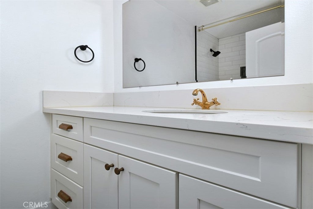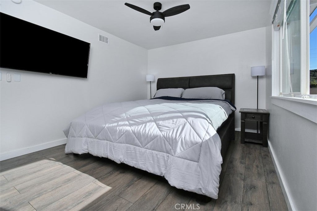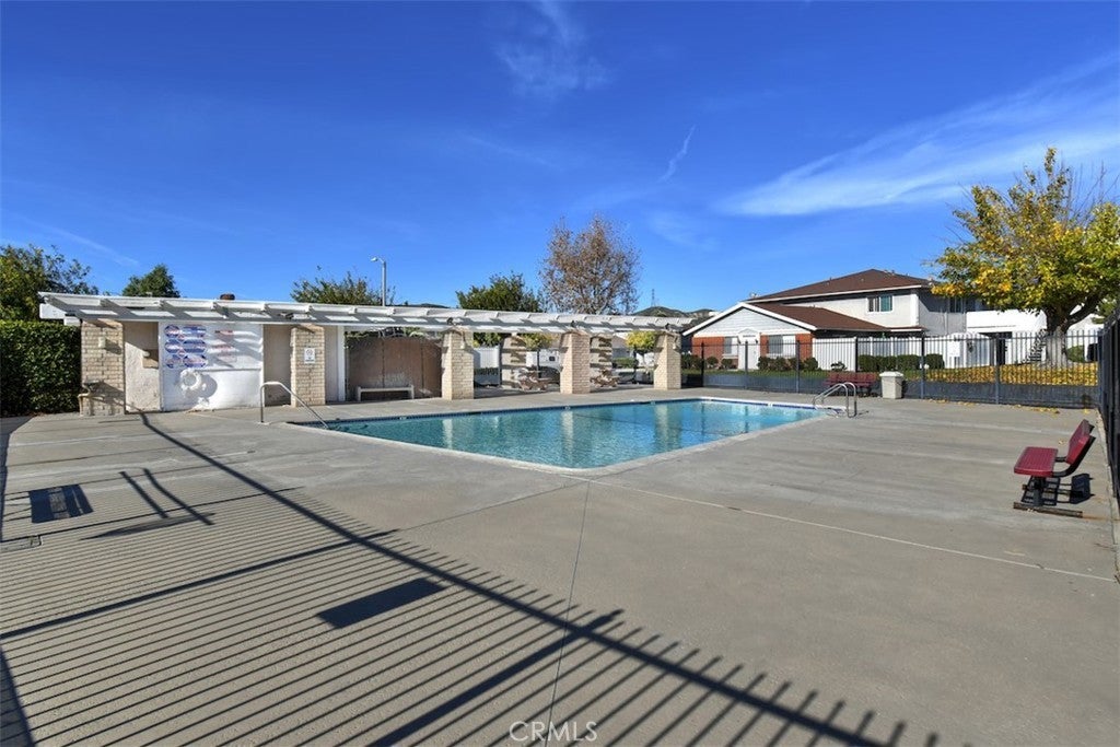 Welcome to this beautifully redesigned 2 bedroom, 1 bathroom condo in the highly sought-after Bouquet Village community. This rare two-story, 834 sq ft home has been thoughtfully updated from top to bottom and offers a bright, open layout filled with natural light and effortless flow. Step inside to rich wood-look tile and laminate flooring, recessed lighting, dual-pane windows, and brand-new central air and heat. The remodeled kitchen is both stylish and functional, featuring a full quartz backsplash, black quartz sink, pantry storage, high-end appliances, and a cozy breakfast nook just steps away. Sliding doors lead to a large private patio, perfect for morning coffee, entertaining, or unwinding at the end of the day. Upstairs, you’ll find two spacious bedrooms, one with mirrored closet doors and the other with a walk-in closet, along with a beautifully upgraded bathroom showcasing tub-to-ceiling tile. A floor-to-ceiling hallway linen closet adds extra storage and everyday convenience. The condo also includes two assigned parking spaces, one covered and one uncovered, plus additional secured storage nearby. Residents enjoy access to a large community pool, playground and picnic area, multiple laundry facilities, and a basketball court. Ideally located within walking distance to local shops and restaurants, and just minutes from award-winning schools, this home checks every box. Best of all, there are no Mello-Roos, and the low HOA dues include water and sewer. This is a rare opportunity in a prime location. Homes like this do not last long.