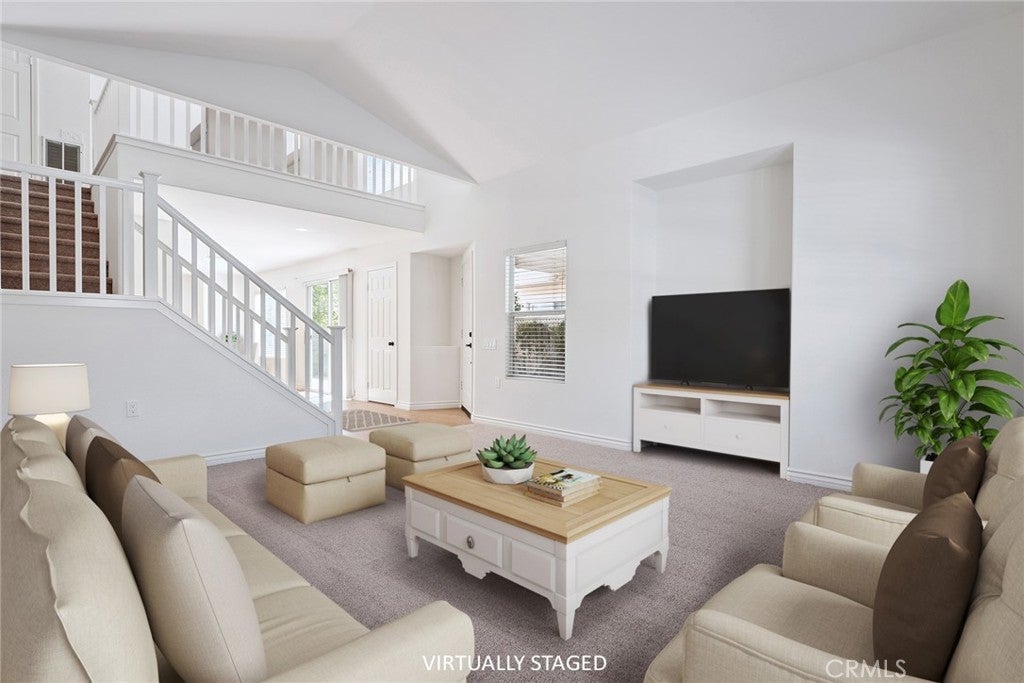 **THIS FOR 2026** CELEBRATE LIVING THE NEW YEAR IN CASA FLORES! A 55+ Gated Community! Move-in ready and Beautifully Maintained, this DETACHED 1,670 sq. ft. Home is Ideally Located on a Prime Interior Lot within the desirable Casa Flores community. Residents enjoy a Secure Gated Entrance, a Sparkling Pool and Spa, as well as Beautifully Landscaped Grounds with a Park and Picnic Area. Inside, the home offers a light-filled, Open Floor Plan with Soaring Ceilings, Plush Carpeting, and Tile Flooring. The Spacious Living and Dining Areas flow seamlessly into the Well-Equipped Kitchen, which features Recessed Lighting, ample cabinet space, and Quality Appliances - Perfect for everyday Cooking and Entertaining. The Main Level Primary Suite provides the ease of single level living and includes Vaulted Ceilings, a large walk-in closet, Sliding Glass Doors to the Backyard, and a Private Bathroom with dual sinks. Upstairs, a flexible Loft Area offers endless possibilities - Ideal for a Home Office, Media Room, or even a Potential Third Bedroom. Step outside to a peaceful, Private Backyard with mature fruit trees and a Spacious Patio Area, perfect for relaxing, dining al fresco, or hosting weekend BBQs. Additional features include Central Air and Heat, Dual Pane Windows, Indoor Laundry, and an attached, Direct Access Two-Car Garage. Conveniently located Near Shopping, Dining, and easy Freeway Access, this Rare Opportunity in Casa Flores won't last long.