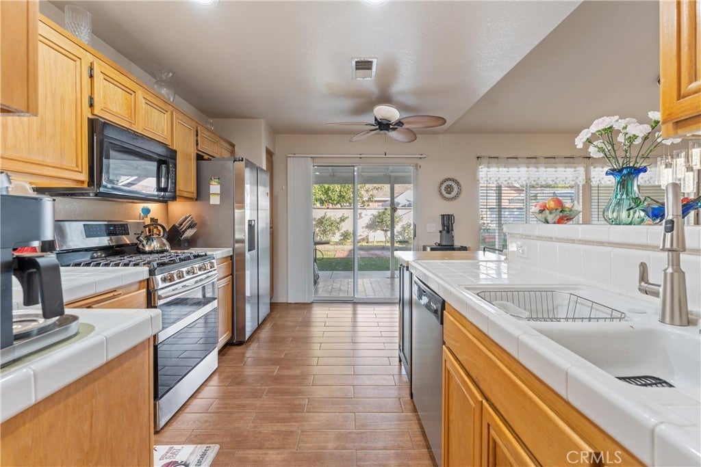 Breakfast Bar, Ceiling Fan(s), Separate/Formal Dining Room, Pull Down Attic Stairs, Tile Counters, Walk-In Closet(s)