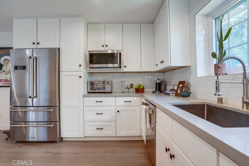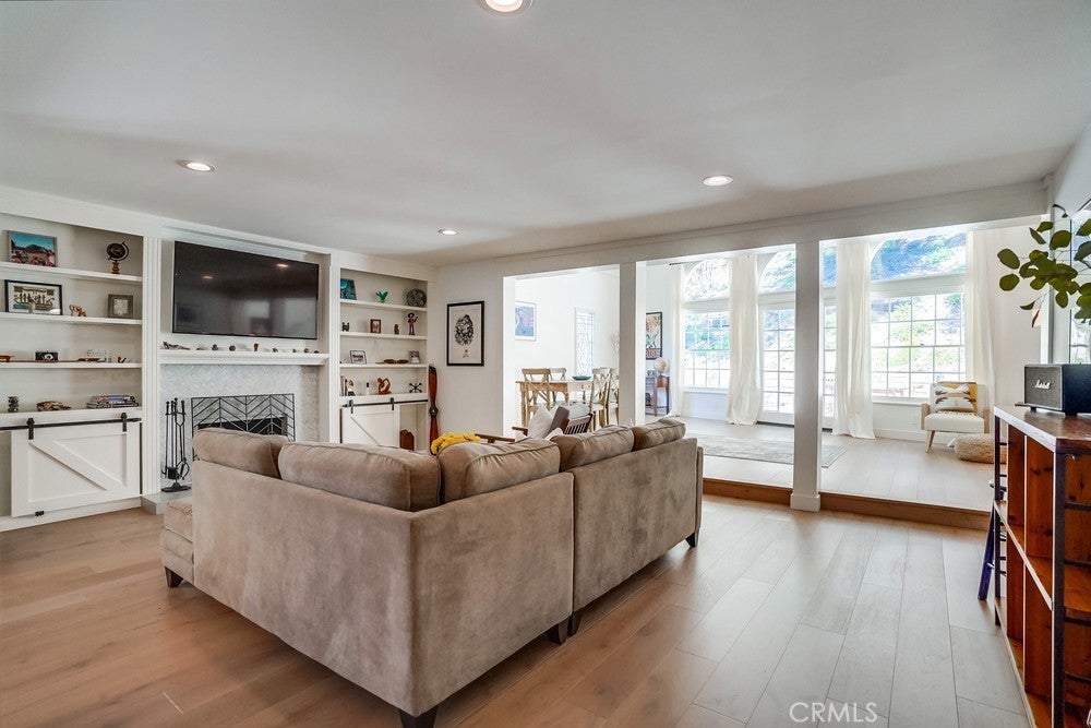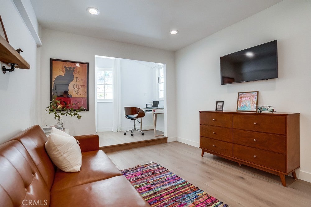 Located in an upscale Woodland Hills enclave on Carlton Terrace, this exceptional property offers the best of both worlds—immediate access to scenic hiking and nature, paired with world-class shopping and dining just minutes away. Strategically perched on a quiet, private nook off a low-traffic street, the home enjoys an unusually high level of privacy—windows open, peaceful living, and no through traffic. A rare opportunity offering two residences for the price of one, the property includes the main home at 20619 Martha Street along with a fully permitted JADU at 20617 Martha Street. The flexible floor plan features 5 bedrooms and 3 bathrooms, with a downstairs 2-bedroom, 1-bath configuration that seamlessly functions as a legal JADU, ideal for multigenerational living, guests, rental income, or a private home office suite. The home has been comprehensively updated inside and out, with brand-new HVAC, plumbing, and electrical systems throughout. Thoughtfully designed as a charming yet sophisticated smart home, it features triple-zoned HVAC, smart climate control, irrigation, and smart locks, along with 240-volt EV-ready infrastructure. Multiple outdoor living spaces—including front yard, side yard, and backyard areas—create a seamless indoor-outdoor lifestyle. Interior finishes reflect timeless luxury, with wide-plank white oak floors, quartz countertops, Carrara marble vanities, and an abundance of storage including multiple walk-in closets and 11 large closets total. This is a rare, turnkey, and highly versatile property in one of Woodland Hills’ most desirable pockets—designed for privacy, flexibility, and modern living.