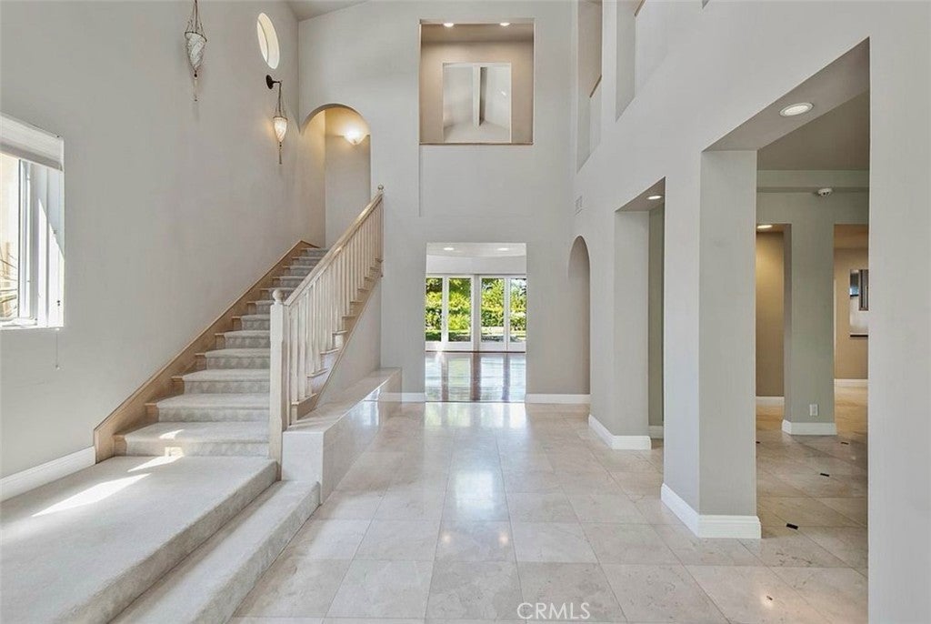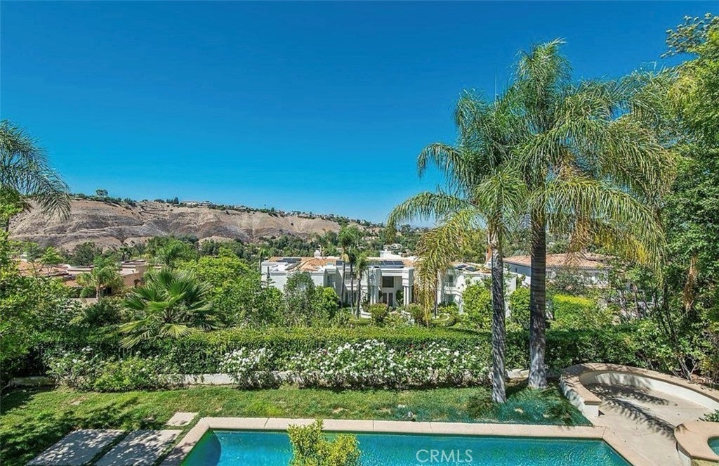 Set within the prestigious, guard-gated community of Calabasas Park Estates and tucked away at the end of a quiet cul-de-sac, this stunning Mediterranean estate offers exceptional privacy and breathtaking views of the Santa Monica Mountains. Spanning nearly 5,000 square feet, the light-filled home blends timeless elegance with modern comfort, featuring soaring ceilings, marble floors, and an open floor plan ideal for both everyday living and entertaining. The living spaces flow seamlessly from a formal living room with fireplace to a spacious dining area and an inviting family room framed by oversized windows. The chef’s kitchen is beautifully appointed with high-end stainless steel appliances, custom cabinetry, and a large center island with seating. Five generously sized bedrooms include a luxurious primary suite with private balcony, panoramic views, spa-inspired bath, soaking tub, dual vanities, and a large custom walk-in closet. The backyard is designed for relaxed California living, offering a sparkling pool and spa, built-in barbecue, multiple lounging areas, and lush landscaping that creates a peaceful, resort-like setting. Additional highlights include a bonus room, three-car garage, and access to lighted community tennis courts. Ideally located near Calabasas Commons, Calabasas Country Club, award-winning Las Virgenes schools, and just minutes to Malibu’s iconic beaches.