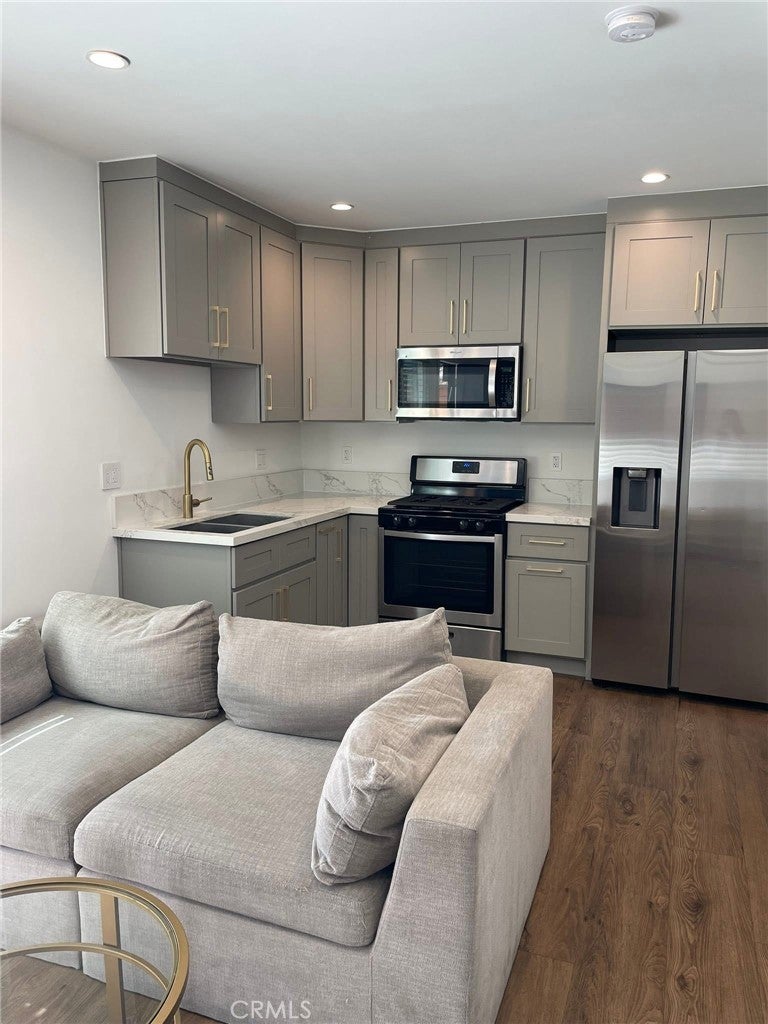 Experience modern living in this spacious, detached, fully furnished 1-bedroom, 1-bath guest house in prime Woodland Hills. This brand-new unit features an open-concept layout with all-new stainless steel appliances, quartz countertops, and custom cabinetry. The bedroom includes a bed, nightstand, and a built-in closet, while the living area is furnished with a couch and coffee table. The bathroom offers stylish finishes and a spa-like shower. Enjoy a private outdoor space, a gated entrance, energy-efficient systems, and all utilities included—water, power, and more. Perfect for anyone seeking comfort, privacy, and convenience in a top LA location. Available February 15, 2026