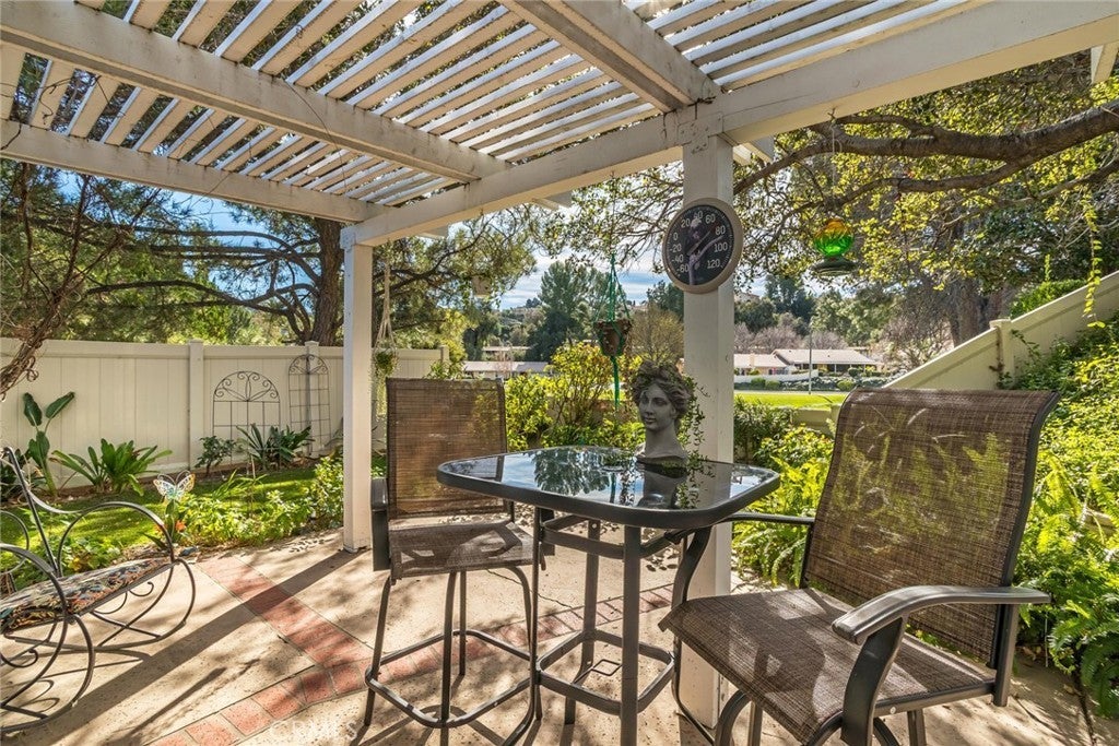 Welcome home to easy living in this vibrant 55+ gated community! Enter this inviting end-unit home through a charming tiled front porch and elegant double doors with beveled stained glass. Inside, an open-concept living and dining area offers the perfect blend of comfort and style, featuring beautiful wood flooring, crown molding, recessed lighting, ceiling fans, and a cozy fireplace. The bright, remodeled kitchen is well-equipped with ample granite counter space, a classic tile backsplash, and a cheerful bay window over the double sink that fills the space with natural light. A beautifully tiled floor completes the look. The spacious primary bedroom includes triple mirrored closets, plantation shutters, and built-in cabinetry with display shelving. The en-suite bath features a granite-topped double vanity and a tiled shower. The second bedroom also offers plantation shutters and a double mirrored closet and is conveniently located near the guest bath with granite counter sink and a remodeled shower. Step outside to the wrap-around patio, surrounded by lush landscaping and overlooking the golf course—perfect for relaxing or entertaining. The garage includes a washer and dryer along with pull-down access to abundant storage space. All community utilities are underground, and residents enjoy an impressive array of amenities, including a refurbished pool and hot tub (2023), clubhouse, auditorium, exercise room, game room, woodworking and ceramics studios, shuffleboard, horseshoe and basketball courts, picnic and BBQ areas, lawn bowling, and two golf courses. The HOA fee covers trash, sewer, building and roof maintenance, landscaping, insurance, a special cable TV package, and more. The gated community also offers 24/7/365 security with guards and patrols—providing peace of mind and resort-style living.