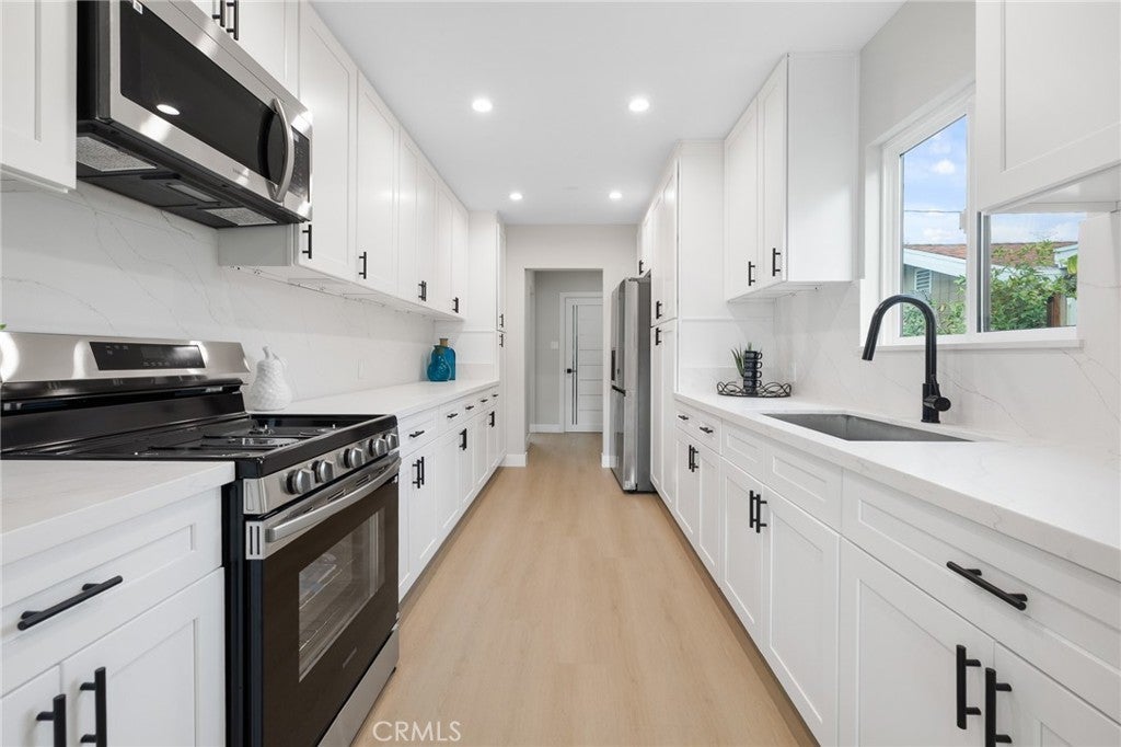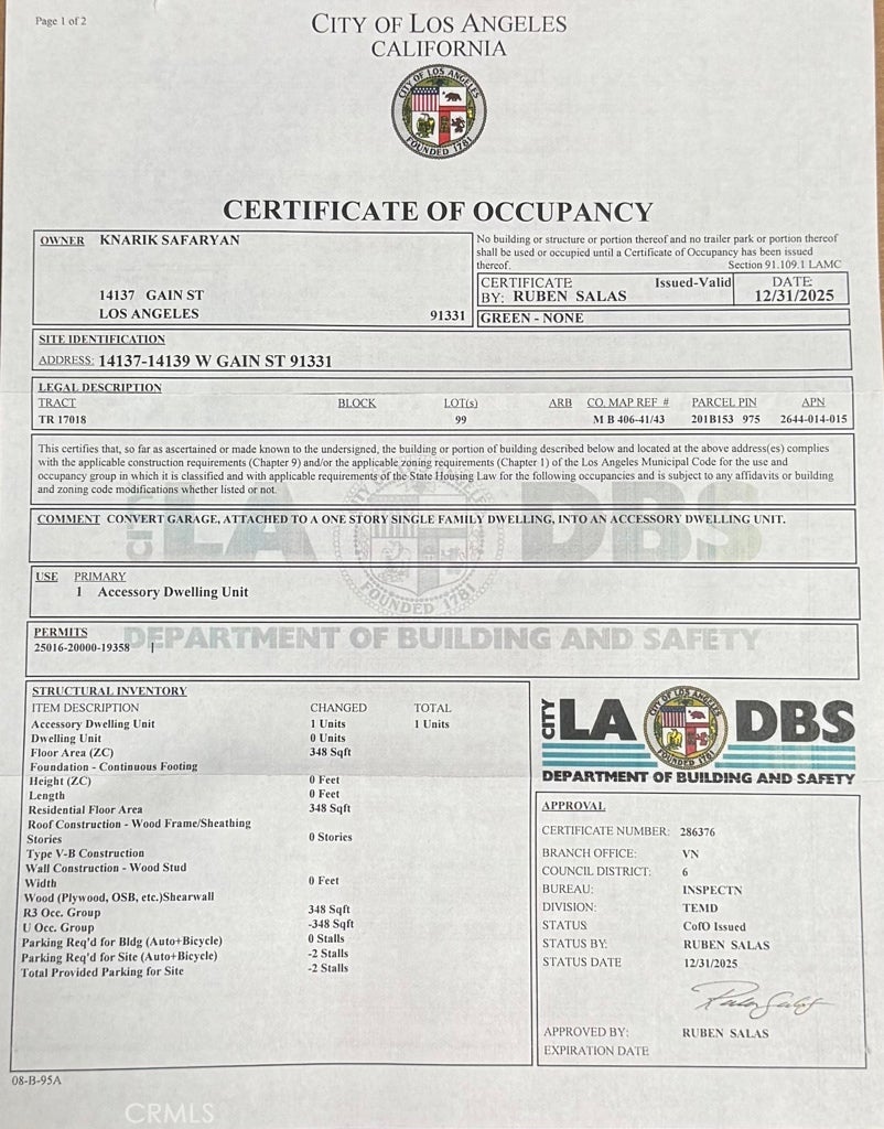 Welcome to 14137-14139 Gain St! This exceptional remodeled residential property offers two distinct living spaces: a newly remodeled 3-bedroom, 2-bath main house with 1,557 sq ft and an attached fully permitted ADU of approximately 348 sq ft, each with its own separate entrance, bathroom, living room and kitchen. Nestled in a charming residential pocket of Arleta, the main house features formal living and dining areas, expansive windows overlooking the front yard, and a cozy fireplace. Additionally, there is a separate sitting area with direct access to the backyard—ideal for a large family that appreciates room to spread out. The updated kitchen is equipped with stainless steel appliances, quartz countertops, and ample cabinet space. Numerous updates have been made, including new windows, a new kitchen, updated flooring and bathrooms, recessed lighting, plumbing, and a brand new AC system with new ducting, among many others. Each unit has its own water heater and washer/dryer hookups. Don’t miss this excellent opportunity to own such a unique property that offers possibilities for comfortable living and potential rental income.
