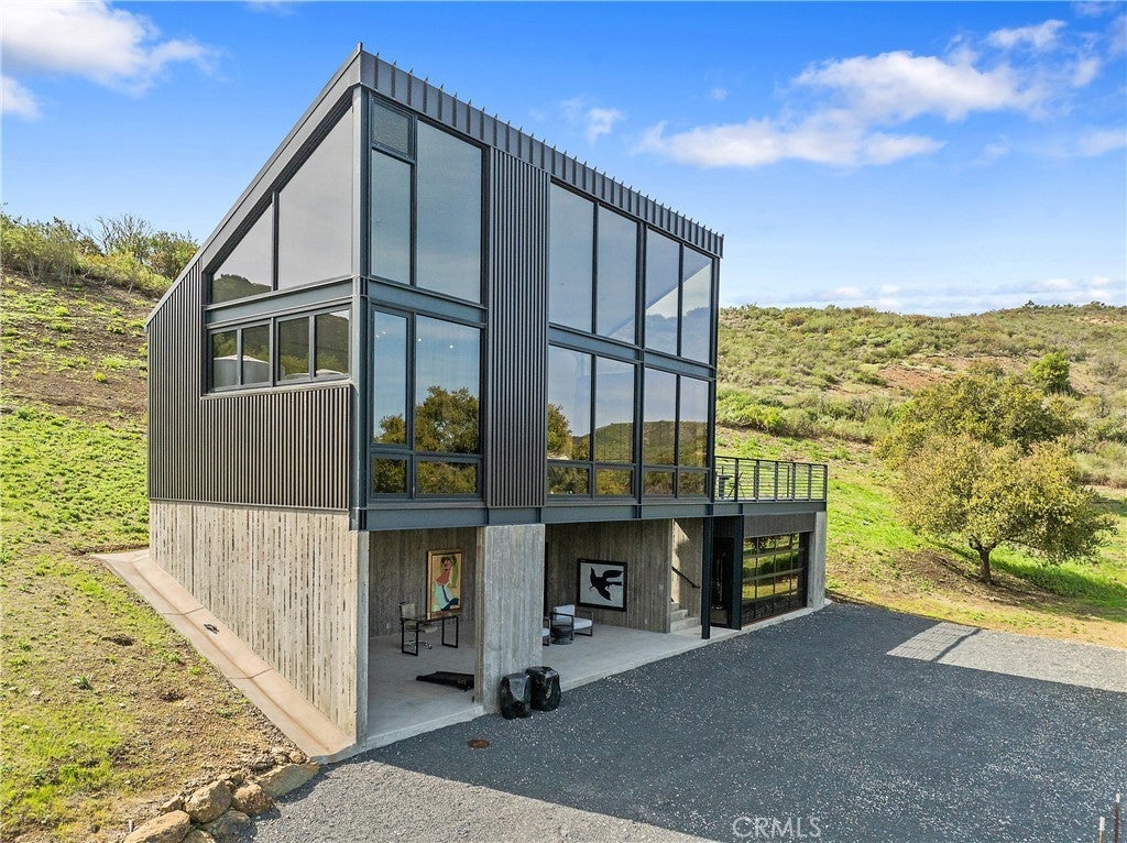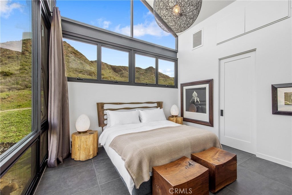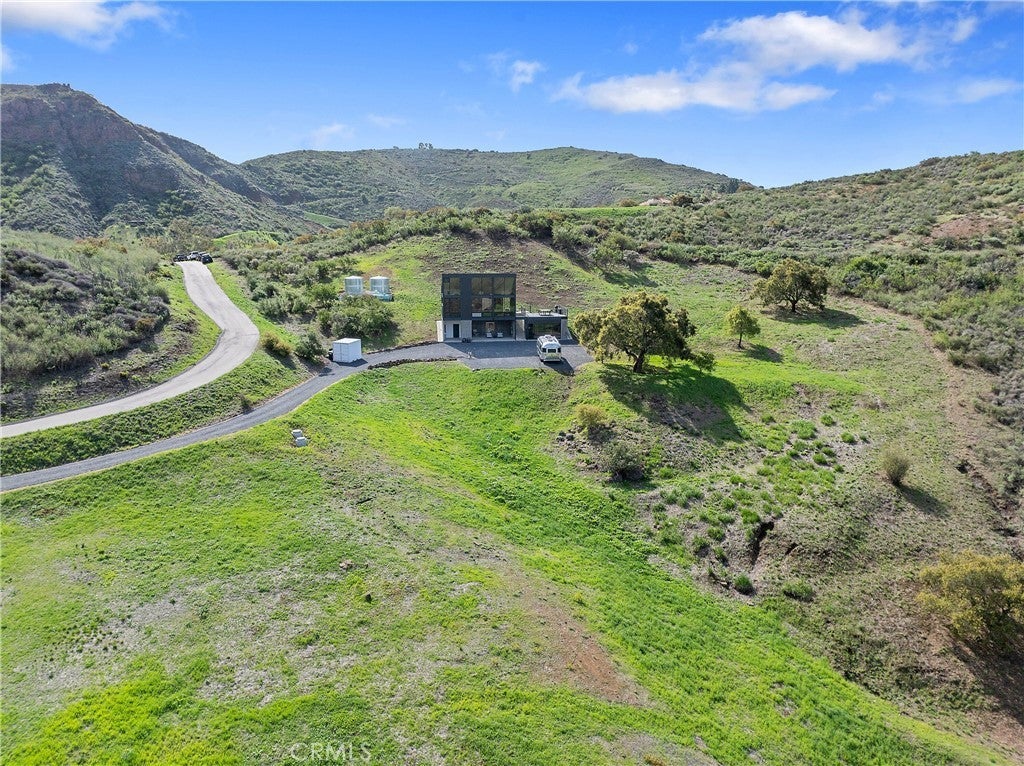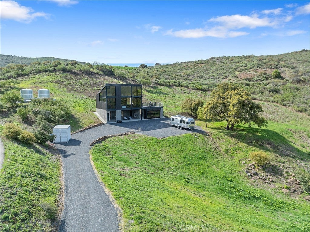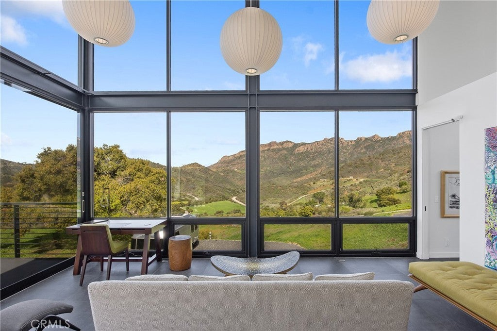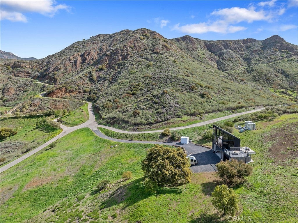 Somewhere over the rainbow is this very rare one of a kind Malibu off-the-grid retreat. No electric or water bills here. Totally self contained retreat, situated on 30 acres of beautiful land, this modern home designed by Architect Bruce Bolander, is made of 20 Foot Glass, board form concrete, and steel, with stunning views of the rolling hillsides and mountain tops that change like a picture hourly. Never offering the same view twice. Ocean views from the top of the property and hiking paths all over to enjoy mother nature and the wildlife. The home has loads of possibly to expand should one choose to. This home is perfect for someone looking for privacy and who enjoys the outdoors. You can create a ranch, a meditation retreat, vineyard, or your own homestead in the hills of Malibu located on the Ventura County side. This property is fully self-contained, with your own solar generating power and backup generator, two water wells, and propane gas. Beautiful rolling hills offer a great space for a greenhouse, barn, horses or a solarium. Expired plans for another home on the property are available. Enjoy amazing nights gazing at the stars and the galaxy! A bonus to this property is a 2024 Airstream Trade Wind that is ideal as guest quarters for your friends and family. Looking to stay connected to the outside world…no problem the property has satellite WIFI. The kitchen and bath have been recently redone with Boffi Case 2.0 cabinetry, Micro Mosaic Sicilian Tile/Shower, brand new Meile appliances, Newport Brass matt black kitchen and bath faucets, Dedar custom draperies from Italy, and top of the Line finishes. Loads of upgrades and amenities all over this property.