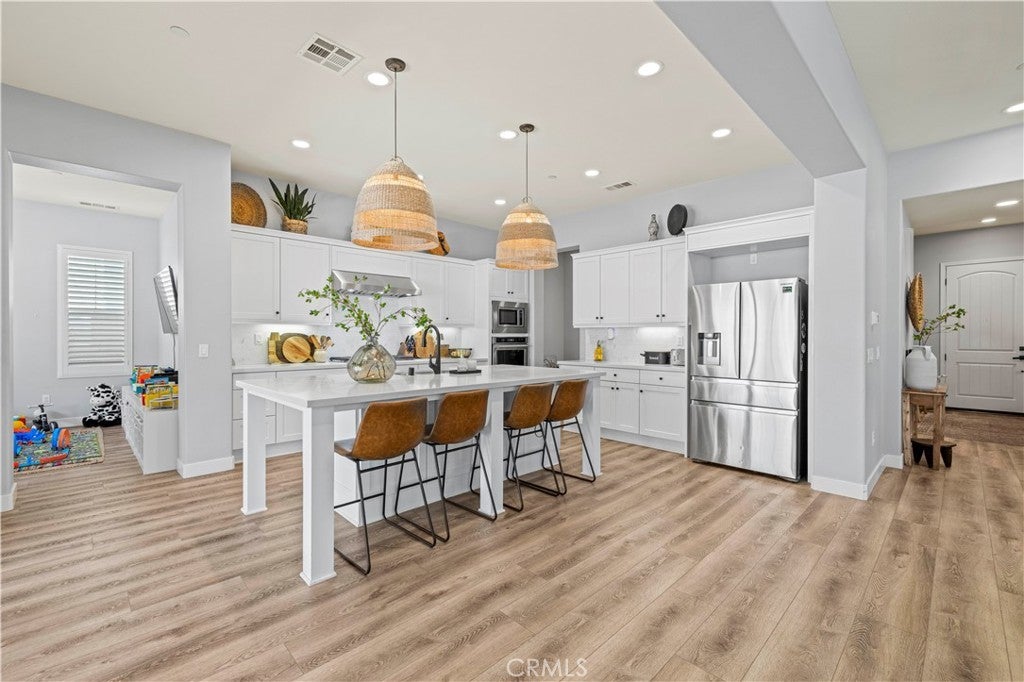 Welcome to 20825 Red Sky Court, located within the prestigious gated community of Five Knolls in Santa Clarita. This beautifully appointed home offers over 4,000 square feet of expansive living space, thoughtfully designed to balance comfort, functionality, and style. The residence features five spacious bedrooms and five bathrooms, ideal for both everyday living and entertaining. Upon entry, laminate flooring, recessed lighting, and refined finishes create a warm and inviting atmosphere throughout. At the center of the home is a gourmet kitchen equipped with stainless steel appliances, gas range and oven, premium countertops, a large center island, and an oversized pantry, making it perfect for gatherings and culinary enthusiasts alike. Multiple living spaces are enhanced by elegant fireplaces, while the primary suite serves as a private retreat with a spa-inspired ensuite bathroom, complete with a separate soaking tub and shower, dual vanities, and generous walk-in closets. Secondary bedrooms are well-sized and include ample closet space. Step outside to a beautifully landscaped backyard designed for both relaxation and entertaining, featuring a built-in BBQ, fire pit, fountain, manicured lawn, ambient lighting, and a covered seating area for year-round enjoyment. Residents of Five Knolls enjoy access to resort-style amenities, including a community pool, pool house, and expansive park, all while being conveniently located near shopping, dining, and freeway access. Additional highlights include central heating and air conditioning and a dedicated laundry room. Experience the best of Santa Clarita living in this exceptional Five Knolls home.