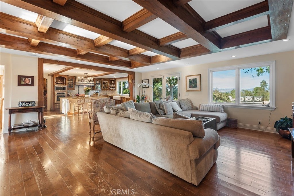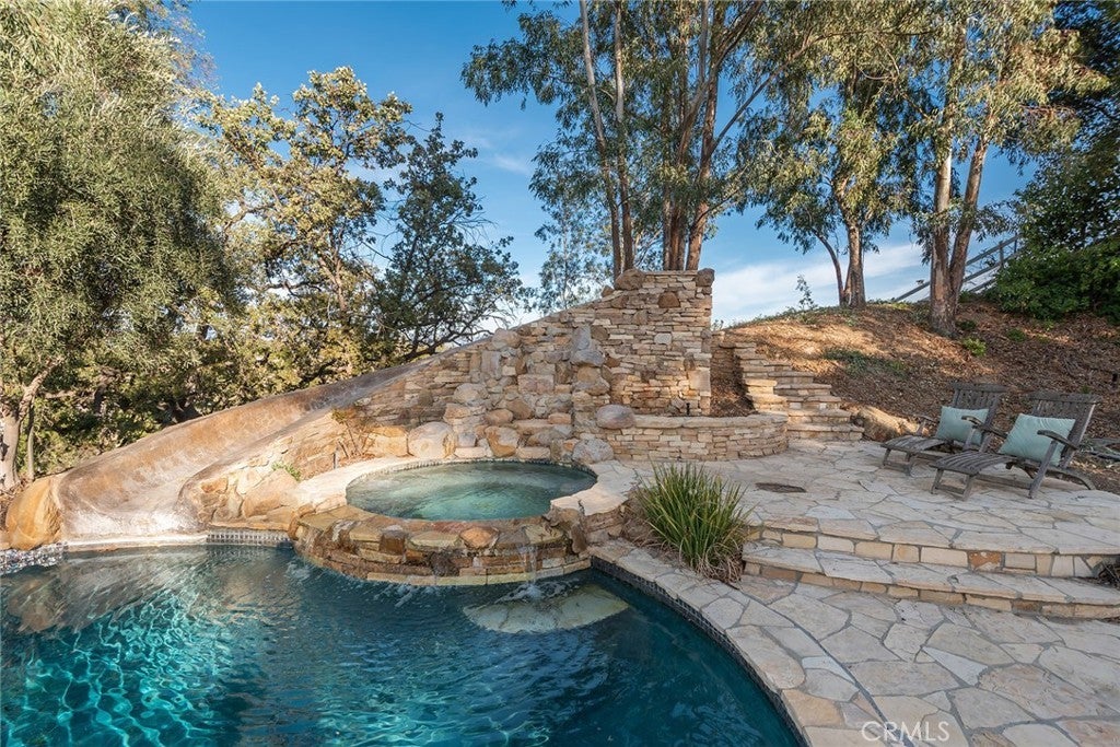 H.O.A. approved plans for a new, approximate 11,000' home are included with the sale. Pastoral views and spacious grounds highlight this home nestled at the end of a quiet cul-de-sac. Features include a spacious kitchen with a big center island, stainless steel appliances, and large sunny breakfast room, that opens to the family room wit open beam ceilings and cozy fireplace, plus formal living & dining rooms, home office, two bonus rooms, and 5 bedrooms including the primary suite with stone bath and large walk-in closet. (Note: two of the bedrooms do not have built-in closets).The grounds feature a large pool, & spa, spacious grass areas, and lots of mature trees. With its excellent location, great privacy, and prime siting at the top of a view street, this home offers loads of potential.