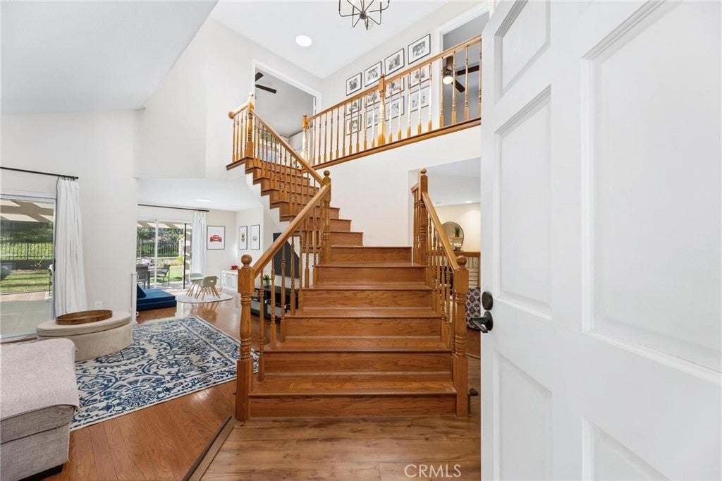 Welcome to this charming two story home located in a desirable Saugus neighborhood. Offering 4 bedrooms, 3 bathrooms, and 1,701 sq/ft of comfortable living space on a 4,538 sq. ft. lot, this home blends warmth, functionality, and timeless appeal. Built in 1988, the residence features vaulted ceilings in both the living room and primary bedroom, creating a bright and airy atmosphere. Beautiful wood flooring flows throughout the main living areas, complementing the inviting layout. The family room features a cozy fireplace and opens seamlessly to the kitchen. Recent upgrades include A/C updated in 2023 and new irrigation system. Step outside to enjoy the private backyard with a covered patio, ideal for outdoor dining, relaxing, or hosting gatherings. Additional highlights include a low HOA, well-proportioned bedrooms, and a thoughtful floor plan. Conveniently located near parks, shopping and dining. This home offers a wonderful opportunity to enjoy all that Santa Clarita has to offer.