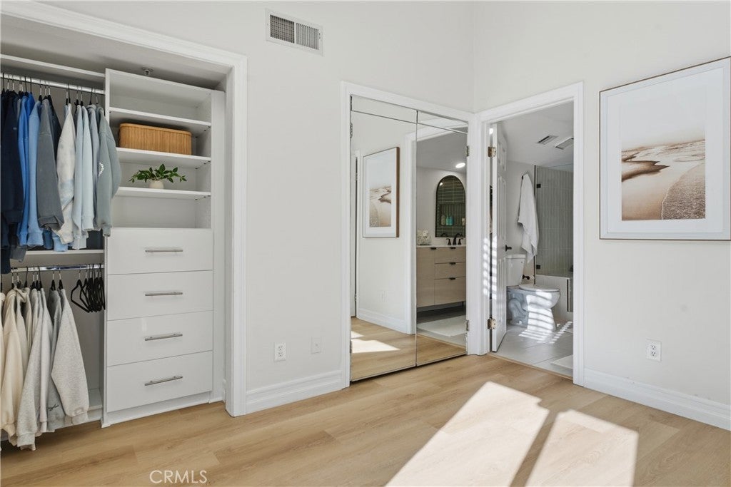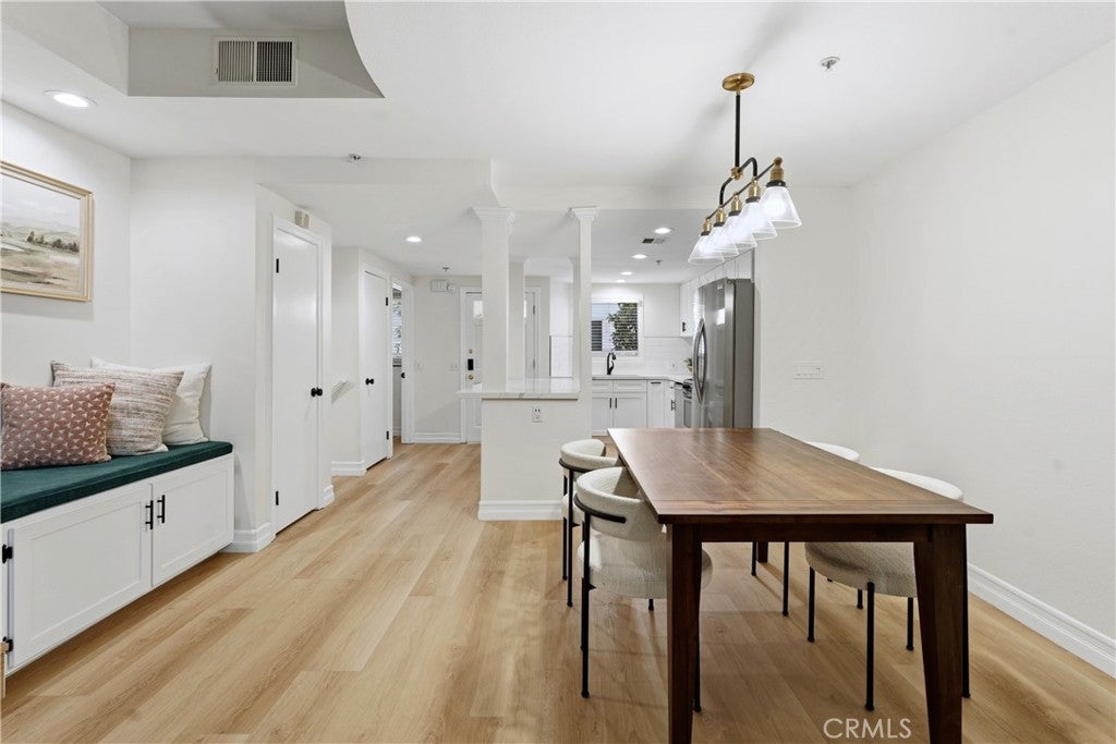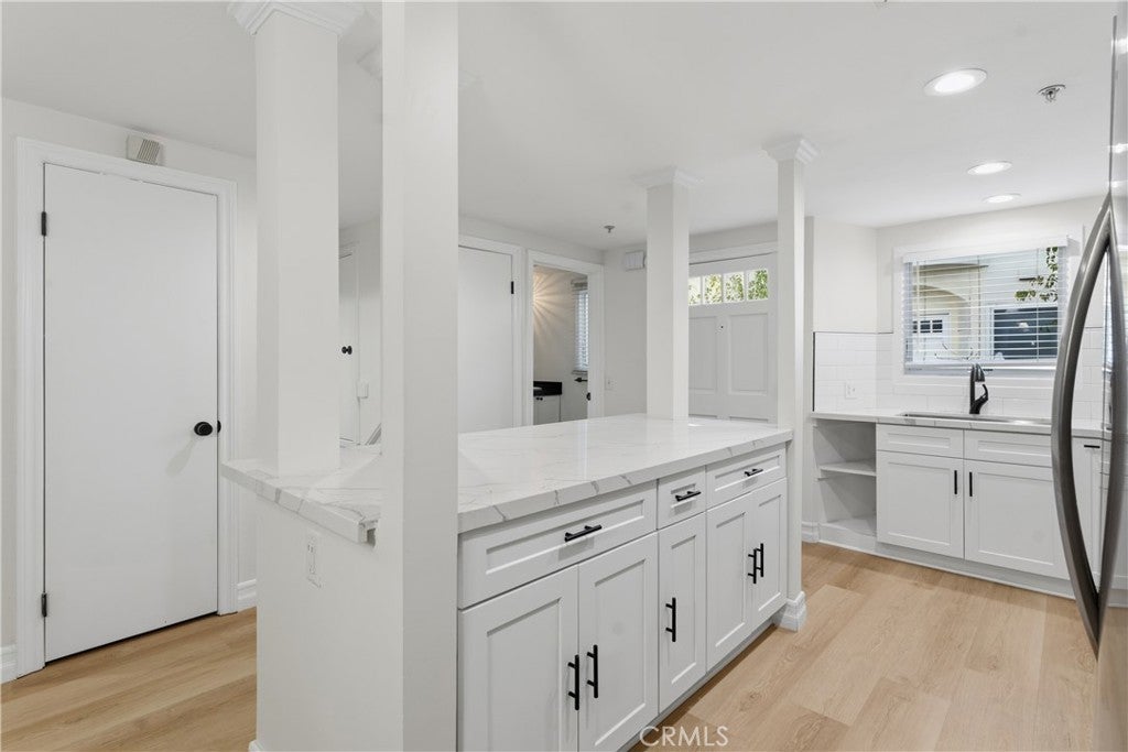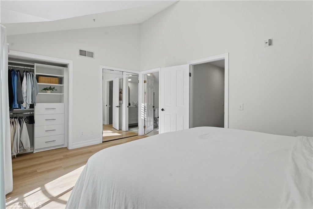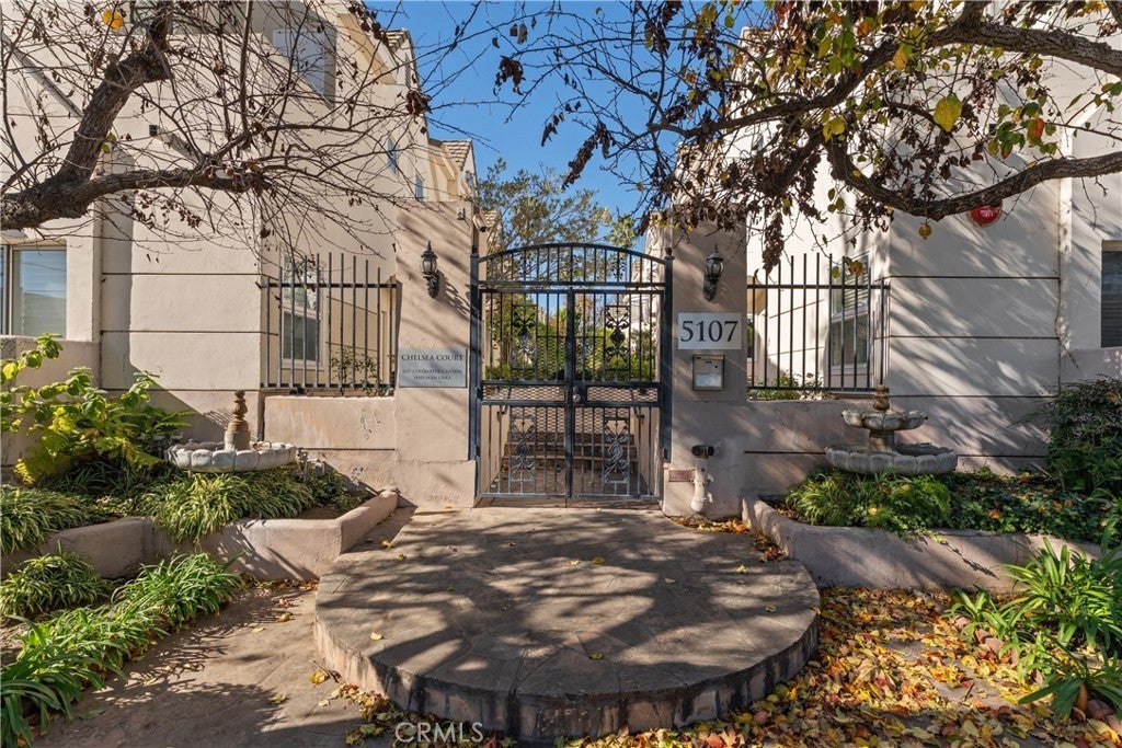 Welcome to Chelsea Court, an exclusive architectural enclave of just 16 residences tucked away in the heart of Sherman Oaks. This beautifully maintained complex features a private courtyard with vibrant landscaping, tranquil water fountains, and charming stone-paved walkways, creating a peaceful and inviting atmosphere. This fully remodeled luxury townhome offers 1,296 square feet of thoughtfully designed living space and showcases a rare private rooftop deck. Inside, the upgraded 2-bedroom, 3-bath residence features a bright and spacious open living area with soaring ceilings, new wood flooring throughout, recessed lighting, and a cozy gas fireplace. Large windows frame lush palm views, filling the space with natural light. The remodeled kitchen is both stylish and functional, complete with granite countertops and stainless steel appliances. Upstairs, the stunning primary suite boasts vaulted ceilings, a private balcony, custom shutters, dual closets, and a beautifully remodeled en-suite bathroom featuring a double vanity and an oversized walk-in shower. The secondary bedroom is equally impressive, offering its own remodeled en-suite bath, high ceilings, and a generous closet. A conveniently located stackable washer and dryer sit just outside the bedrooms for easy access. Additional highlights include two gated subterranean parking spaces with direct individual access into the unit, one of which is fully equipped for an electric vehicle charger. This home is also one of the few units in the community with a private, oversized storage room, perfect for extra belongings. Ideally located with quick access to the 101 Freeway, this highly desirable home is just blocks from Whole Foods, along with popular restaurants, shops, and neighborhood favorites—offering the perfect blend of comfort, style, and convenience.