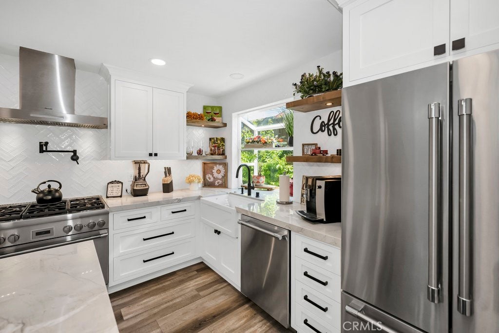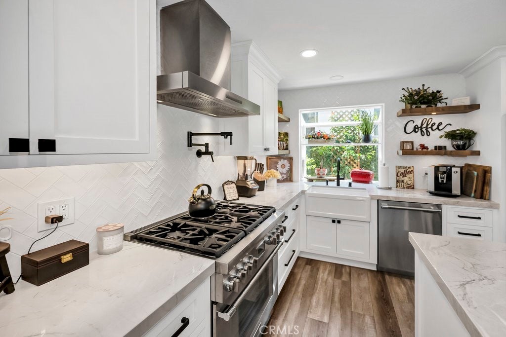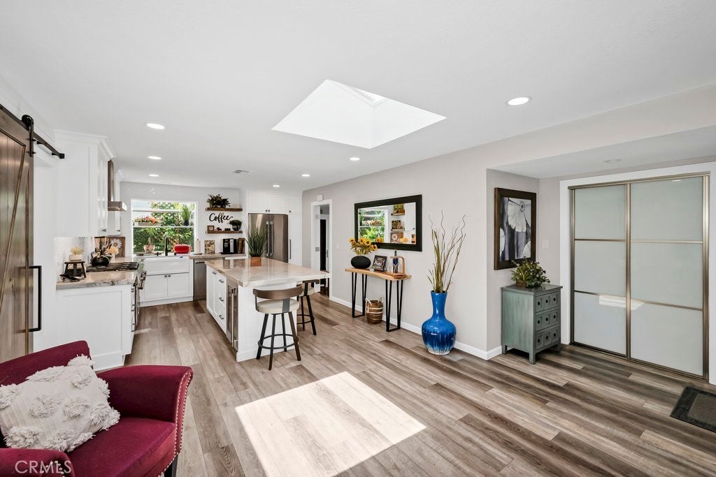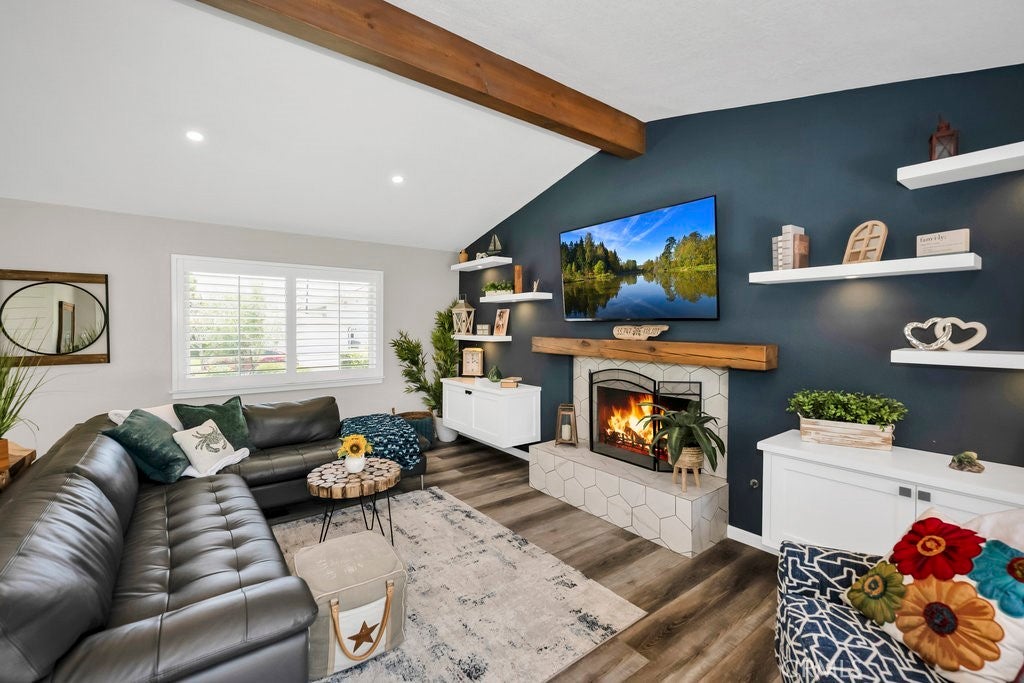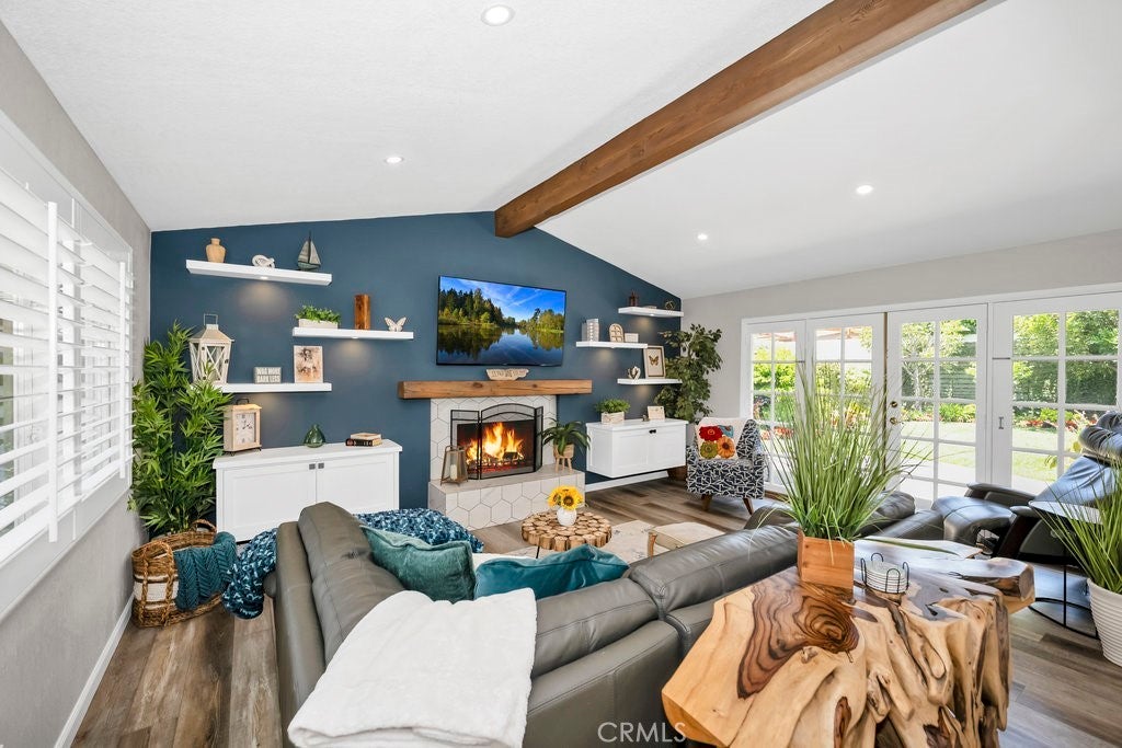 Where Comfort Meets Sophistication on "The Hill"! Tucked away on a peaceful stretch of Driftwood Avenue—set back from Pacific Coast Highway—this stunning residence is located in one of the area's most sought-after neighborhoods, “The Hill.” Thoughtfully transformed in 2021 from the inside out, this home is a showcase of quality craftsmanship and attention to detail. The beautifully remodeled kitchen is a true standout, featuring striking Quartzite countertops, custom cabinetry with under-cabinet lighting, pot-filler over the range, Thermador appliances—including a wine fridge, built-in refrigerator, and microwave—plus a charming bay window and skylight that flood the space with natural light. The living room exudes warmth and style with a redwood beam accent, custom fireplace mantle, and French doors that open to a lush, fully fenced backyard offering the ultimate in privacy and relaxation. Each bedroom with ceiling fans, custom closets offer tons of space and privacy to wind down from a long day. Not to be missed is the fully insulated GARAGE—featuring epoxy flooring, custom cabinetry, a mirrored wall, and an automatic screen door—adding an additional 468sf for a total of 1831sf of versatile living or flex space. Additional highlights include recessed lighting throughout, luxury vinyl plank flooring, custom molding, shiplap accent wall, a beautifully renovated hall bath, Barn Door, new roof, and central A/C. This home isn’t just a place to live—it’s a lifestyle.