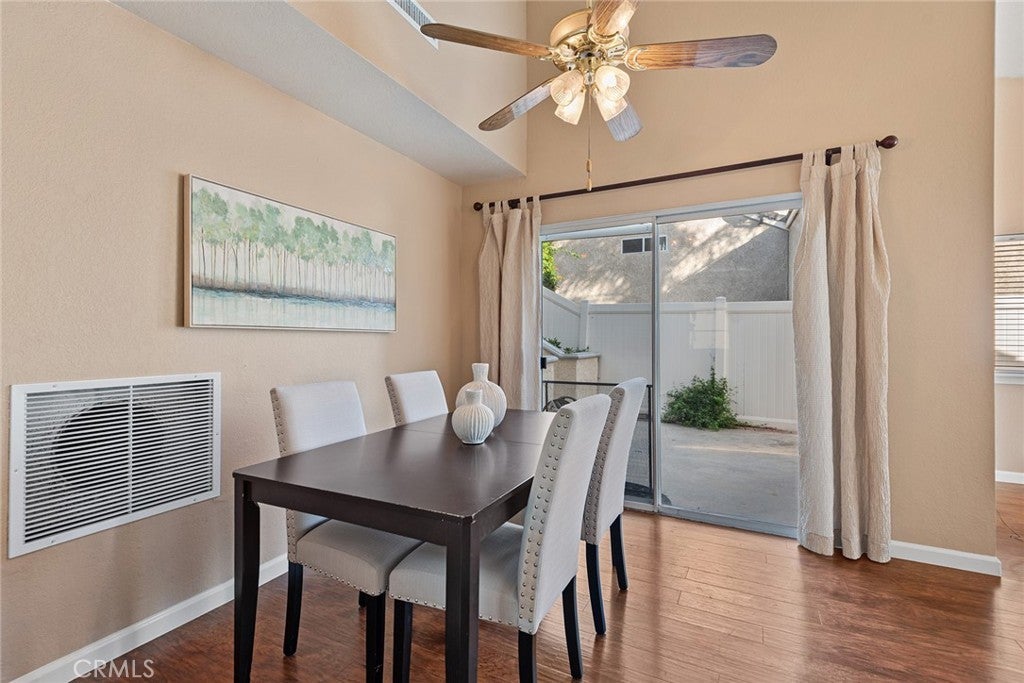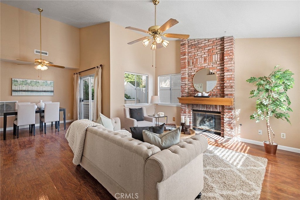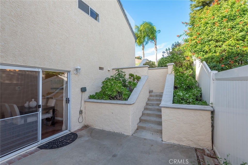 Located in a highly sought-after community in West Simi Valley, this beautiful home is perfectly positioned on a quiet cul-de-sac and offers peaceful, extended hill views from the backyard. Enjoy fresh curb appeal with all-new exterior paint and gutters, and a thoughtfully designed floor plan featuring three bedrooms and two and a half bathrooms. The inviting living room showcases a natural brick fireplace topped with a handcrafted wood mantel, creating a warm and welcoming focal point. A separate dining area opens through a sliding door to the side patio—ideal for indoor-outdoor entertaining. The bright kitchen features a charming garden window, perfect for growing herbs or enjoying natural light. A convenient powder room is located on the main level for guests. Upstairs, the expansive primary suite offers a private balcony, walk-in closet, and an en-suite bathroom for a true retreat-like feel. Two additional bedrooms each have sliding doors leading to the backyard and share a full hallway bathroom. The backyard is flat and useable with views of open space making it feel much larger than the lot size would indicate. Must see to appreciate. Additional highlights include a two-car direct-access garage and a low HOA that includes access to a community swimming pool and spa. The home is ideally located close to shopping, parks, and easy freeway access—combining tranquility with everyday convenience.
