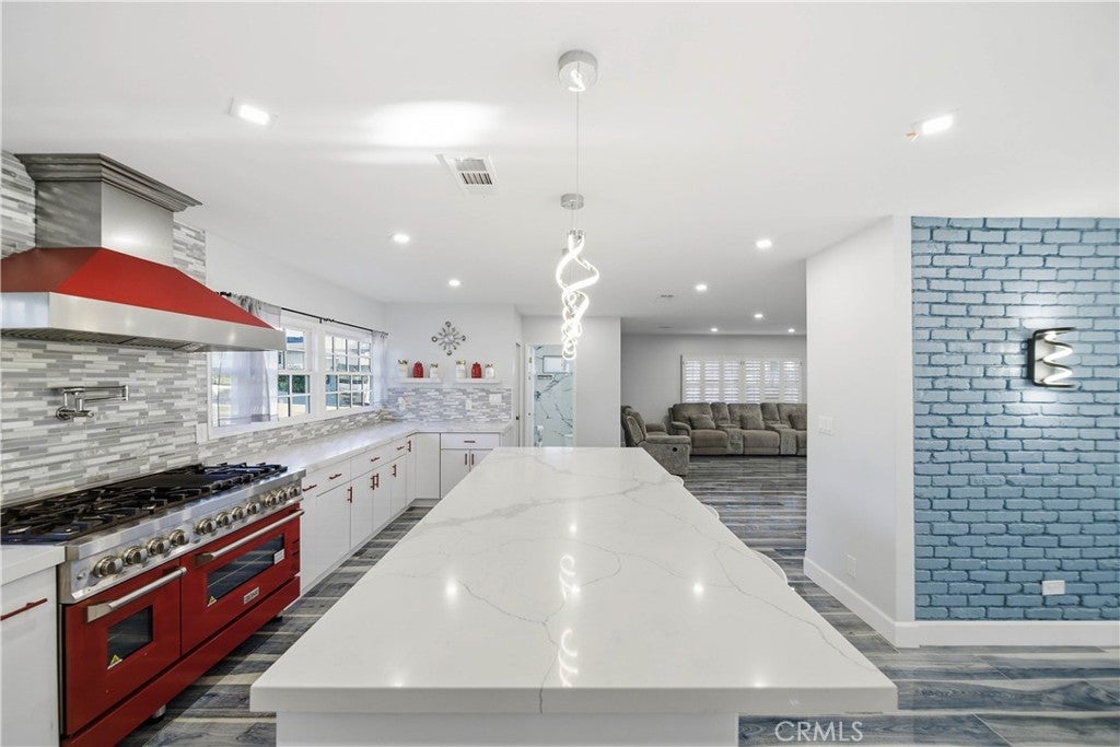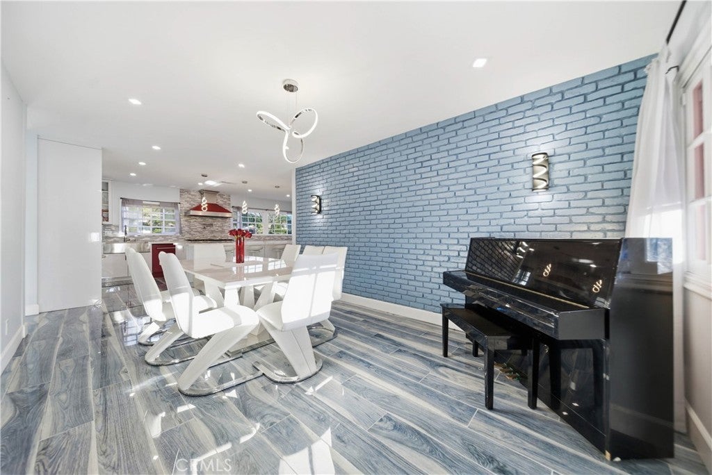 Brick Walls, Ceiling Fan(s), Separate/Formal Dining Room, Eat-in Kitchen, Open Floorplan, Quartz Counters, Recessed Lighting