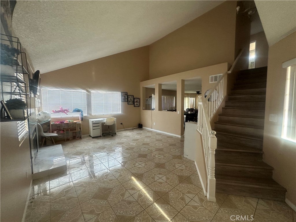 Investor Opportunity! 2-story corner home in Palmdale featuring 3 large bedrooms and 2.5 bathrooms with an attached 3-car garage and tile roof. Spacious floor plan includes a large living room, family room, oversized kitchen, and dining area with ceramic tile flooring throughout except bedrooms hallway and stairs have laminated floors. The primary bedroom offers a full bath and walk-in closet, and one secondary bedroom features a private balcony with views. Central air conditioning and heating already in place. Situated on a corner lot with an open front yard and a private backyard secured by block walls. Property needs cosmetic updates, including paint and minor repairs—ideal for investors, flippers, or buyers looking to add value. Strong layout, desirable features, and great upside potential. Bring your buyers—this is a solid value-add opportunity.