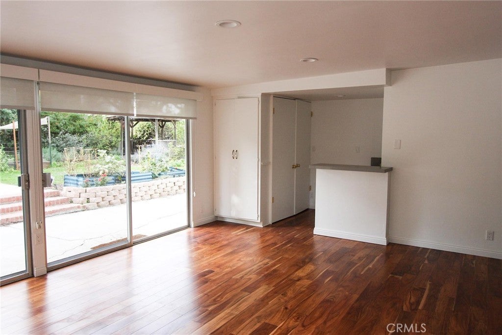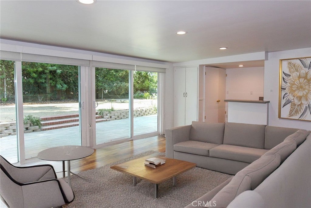 Charming single level residence south of the Boulevard, situated on a sweeping corner lot with a circular driveway and gated courtyard entry. Hardwood floors run throughout the spacious layout, featuring four bedrooms, a family room, living room, dining room, and generous closet space. The updated kitchen showcases quartz countertops, stainless steel appliances, and breakfast area. Bathrooms are tastefully updated with frameless glass shower enclosures, quartz counters, modern fixtures, and dual sinks in the primary and full bath. Additional highlights include new dual pane windows, an in home laundry area with a versatile quartz counter/dry bar, and a two-car garage. Expansive outdoor areas offer exceptional entertaining space, including a recently renovated pool area and a separate backyard.
