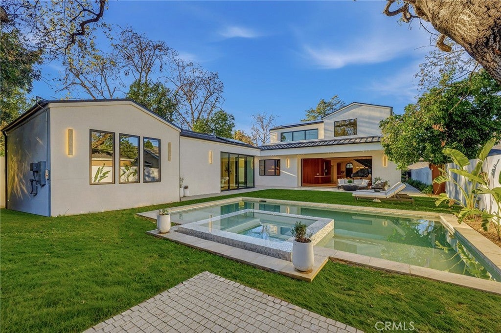 Introducing The Arch House, a brand-new modern estate that embodies the perfect balance of architectural sophistication and organic warmth. Designed with intention and artistry, this residence celebrates natural materials, flowing forms, and an effortless connection between indoor and outdoor living. Step inside to discover interiors wrapped in rich wood finishes, rounded architectural edges, and sun-drenched open spaces that exude calm and elegance. Every detail has been thoughtfully curated to create a sanctuary of style and serenity. Large sliding glass walls open to a private backyard retreat, centered around a magnificent heritage oak tree the heart of the property. Here, you’ll find a sparkling pool and spa, built-in BBQ center, and multiple lounging areas that invite relaxation and entertaining year-round. A detached 1-bedroom, 1-bath ADU complements the main residence, offering flexibility for guests, extended family, or a private creative studio. Blending timeless natural beauty with contemporary design, The Arch House is more than a home it’s a living work of art where form, function, and nature exist in perfect harmony. Luxury living close to fine dining, shops and more.
