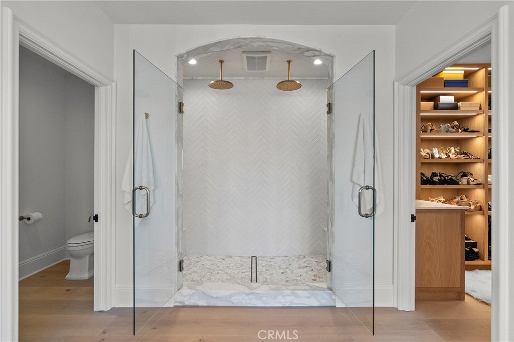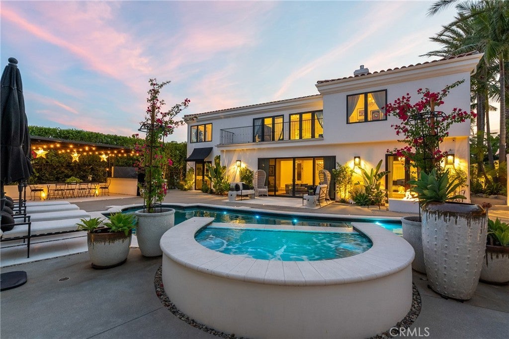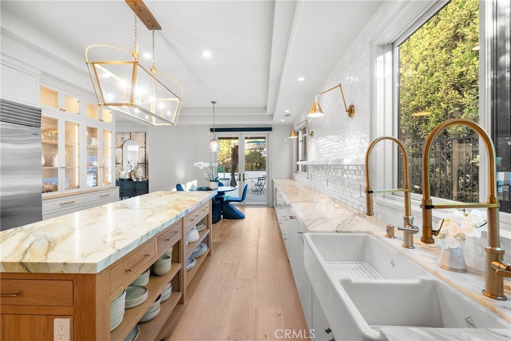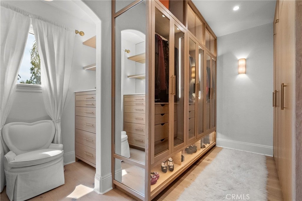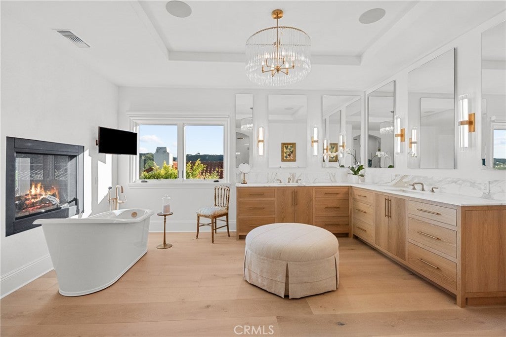 Welcome home to this stylish and elegant home in the guard-gated community of The Ridge in the heart of Calabasas. Situated near the end of a cul-de-sac, this extensively renovated home has been updated to the highest standards - with no expense spared - and is perfectly designed to enjoy indoor-outdoor living at its best. As you enter the two-story foyer, you'll notice the gorgeous large slab limestone floors, an abundance of natural light, and beautifully appointed formal living and dining rooms on either side. Just beyond, the spacious family room with fireplace looks out over the entertainer's backyard and flows into the show-stopping chef’s kitchen, featuring striking Calcutta Borghini marble counters and center island, Wolf appliances, custom solid flat sawn white oak cabinetry, and Zellige tiles. The lower level also includes an office overlooking the backyard, a bedroom with en-suite bath, and a fabulous powder room with a backlit onyx sink. The beautiful limestone extends upstairs, with 10" wide European white oak wood flooring covering the remainder of the residence. Once upstairs, you find a generous loft/family room and a balcony with sweeping views. The private primary suite boasts stunning views, a two-sided fireplace, and a luxurious spa-like bath with a soaking tub, large walk-in shower, and dual custom closets - all crafted with timeless, high-end materials. The refined details extend to the secondary bathrooms, where you'll also find solid white oak cabinets, hand-made and cut terra cotta and marble flooring, Zellige tiles, and premium fixtures. The backyard oasis features a pool and spa framed by beautiful hedges and includes a fire-pit, a bbq area with a pizza oven, a cozy dining area, and lush, sophisticated landscaping - perfect for both relaxing and entertaining. Finally, this home is outfitted with a tankless water heater, premium audio, and a comprehensive video security system.