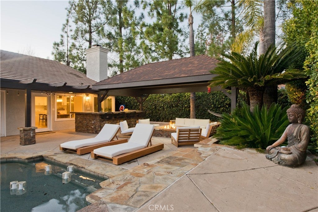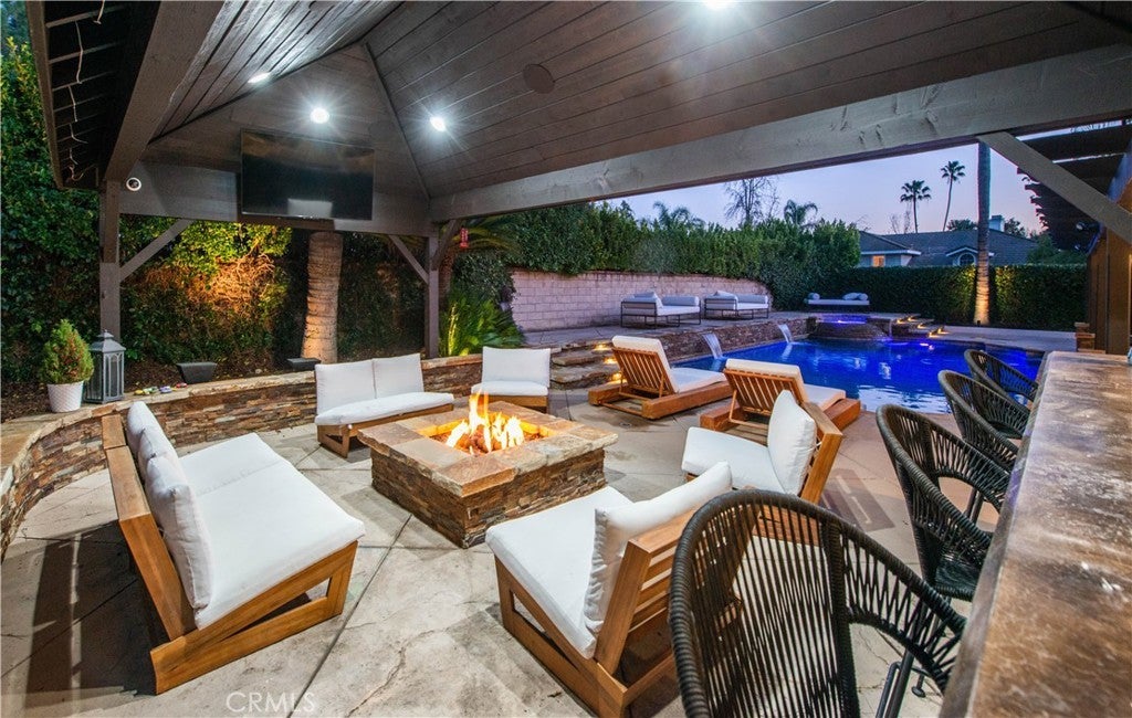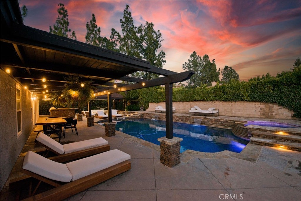 Set within the coveted Morrison Ranch South Meadow Estates of Agoura, this remodeled single-story pool home offers privacy, sophistication, and resort-style living. Situated on a generous 10,657-square-foot private lot, the residence spans over 3,000 square feet of thoughtfully designed living space, featuring four spacious bedrooms and three-and-a-half beautifully remodeled bathrooms.The open, flowing floor plan is filled with abundant natural light, seamlessly connecting the home’s living spaces for both everyday comfort and effortless entertaining. The chef’s kitchen is a true centerpiece, showcasing premium stainless-steel Viking appliances, an oversized center island with breakfast bar, and an open layout that flows directly into the living and dining areas. The luxurious primary suite serves as a private retreat, complete with a cozy fireplace and sitting area, dual closets including a custom walk-in with built-ins, and a second mirrored closet. The spa-inspired primary bathroom features an oversized soaking tub and a spacious walk-in shower. Bonus area is currently being used as an in-home gym. Step outside to a backyard designed for resort-style enjoyment. A large covered patio offers a built-in entertainment system with TV, surround sound, and a gas fireplace, ideal for year-round outdoor living. The saltwater pool with Baja shelf and spa invites relaxation on warm summer days, while the outdoor cooking area is equipped with high-end Lion appliances for elevated alfresco dining. Additional premium upgrades include fully paid solar, blackout shades throughout, seven hard-wired security cameras, a whole-home water filtration and softening system with UV filtration, four fireplaces including an outdoor fire pit, a newly upgraded WiFi-enabled sprinkler control system, and automatic outdoor lighting. This exceptional home blends luxury, comfort, and modern convenience in one of Agoura’s most desirable neighborhoods.