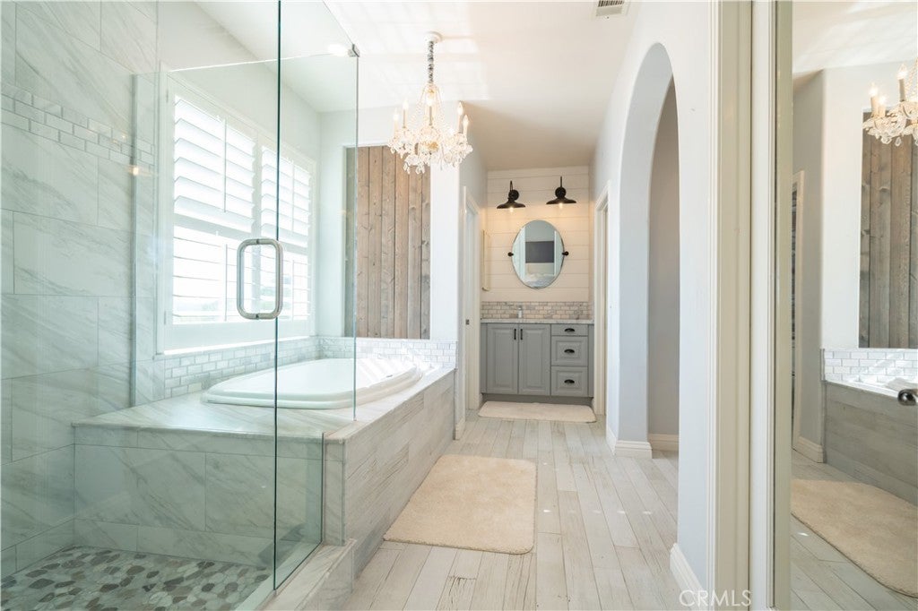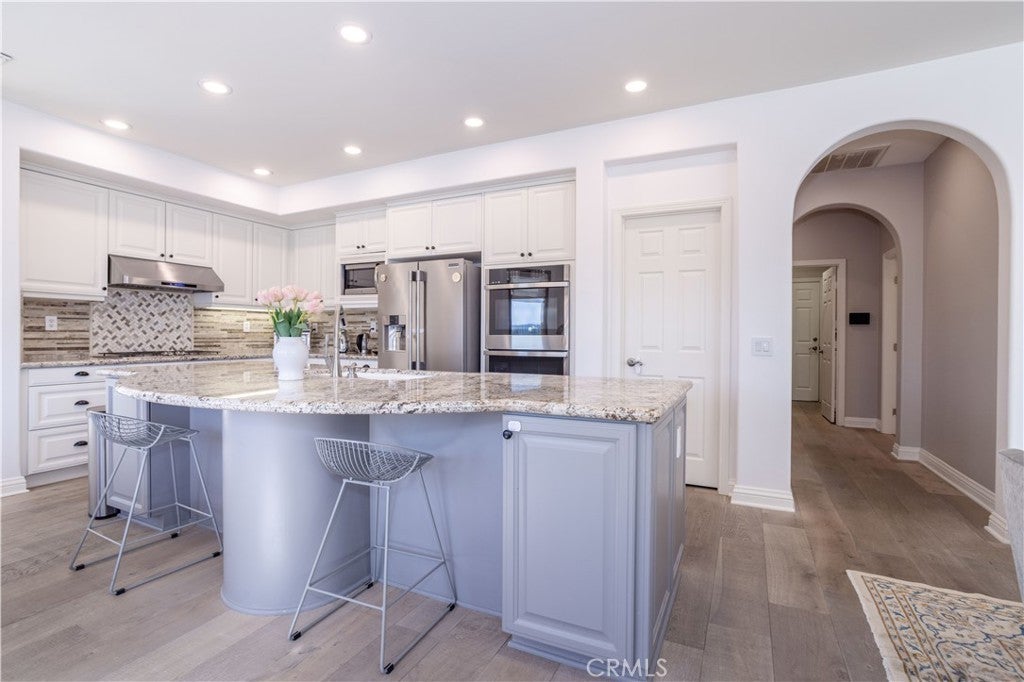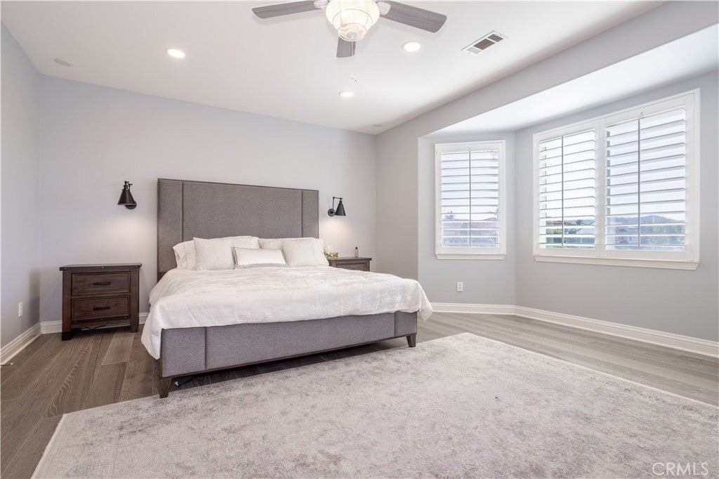 Presenting the most exclusive Silverthorne 6-bedroom and 4-bath estate nestled in the Northern Foothills of Simi Valley—where refined artistry meets exceptional craftsmanship to create a truly breathtaking retreat. This exceptional residence blends modern sophistication with timeless elegance and features recessed lighting throughout, enhancing the home’s bright and refined ambiance. Upon entry, you’re welcomed into a thoughtfully curated interior offering two bedrooms on the main level, one featuring a walk-in closet, along with a full bath—ideal for guests, multigenerational living, or a private home office. The formal living room impresses with soaring cathedral ceilings and custom roller shades, flowing effortlessly into the dining room, adorned with bespoke lighting and plantation shutters. The gourmet kitchen is a chef’s delight, showcasing custom cabinetry, granite countertops, and high-end stainless steel appliances, including a five-burner cooktop and double ovens. A spacious center island and charming breakfast nook overlook the serene backyard and scenic views, creating the perfect setting to start your day. The adjoining family room offers a warm and inviting atmosphere with a cozy fireplace and built-in media niche. A well-appointed laundry room adds everyday convenience with ample cabinetry and storage. Upstairs, you’ll find four generously sized bedrooms, including the luxurious primary suite—a true private retreat featuring engineered wood flooring, dual walk-in closets, and a fully remodeled, spa-inspired primary bathroom. Each upstairs bedroom offers comfort, flexibility, and abundant natural light. Step outside to a newly remodeled pool and spa framed by picturesque hillside and backyard views—an entertainer’s dream. The outdoor space is completed with a stylish gazebo and low-maintenance synthetic turf, delivering beauty with effortless upkeep. Additional highlights include a brand-new HVAC system, a two-car garage, and a coveted location within the prestigious Silverthorne Development. This rare offering combines elegance, functionality, and lifestyle—presenting an extraordinary opportunity to own one of Simi Valley’s finest homes. Your exclusive lifestyle awaits.