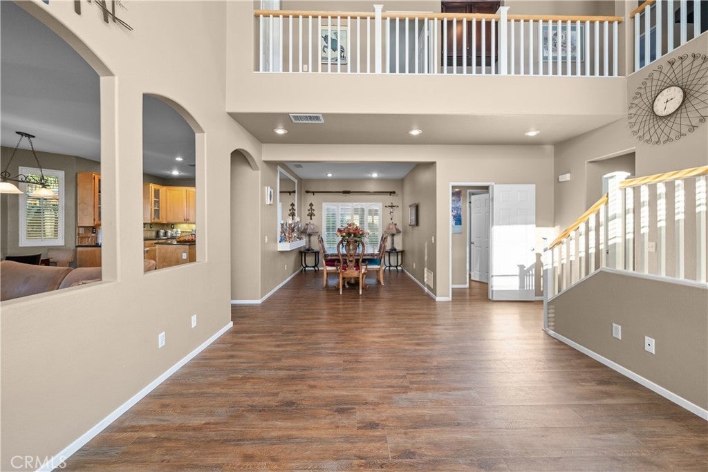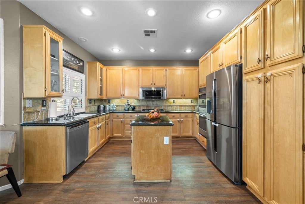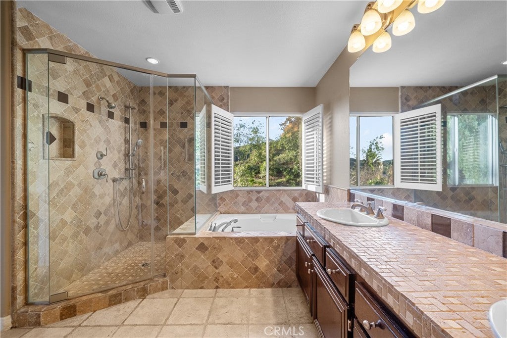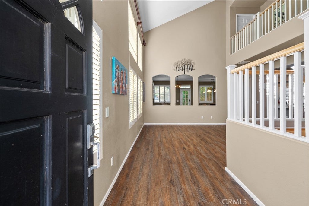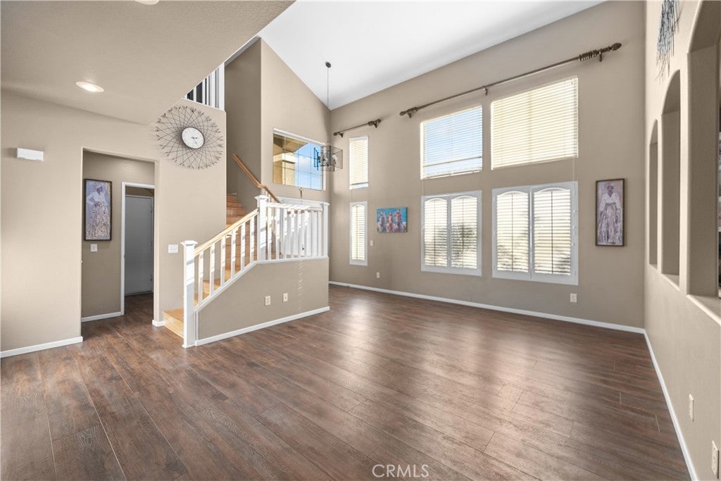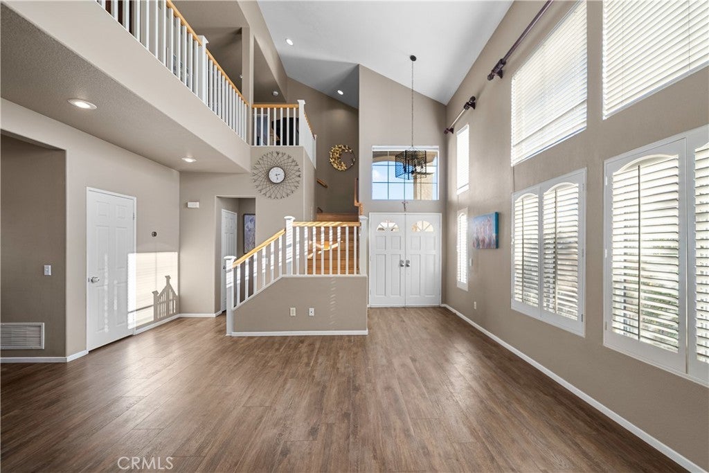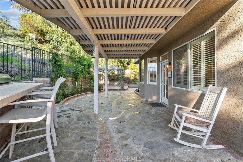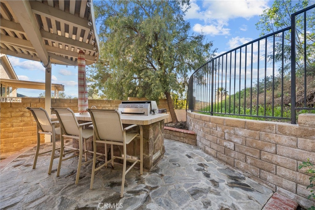 Move-in ready and stunning cul-de-sac home offering exceptional privacy with no rear neighbors, No Mello-Roos, and No HOA. This light and airy residence features an open floor plan with 5 bedrooms, 3 bathrooms, a downstairs bonus room with sink and refrigerator, ideal for today’s flexible living. The spacious living room showcases vaulted ceilings and abundant windows that fill the home with natural light and scenic views. The open kitchen is thoughtfully designed with a stainless-steel dishwasher, double oven, built-in microwave, ample counter space, pantry, and a center island that connects seamlessly to the breakfast area and opens to the family room—perfect for entertaining and everyday living. A beautiful staircase with wood handrails leads to the primary suite, featuring floor-to-ceiling windows, a large walk-in closet plus an additional mirrored closet, and a luxurious primary bathroom with travertine flooring, double-sink vanity, granite finishes, oversized soaking tub, and a separate shower. The bright upstairs hallway connects to generously sized secondary bedrooms with mirrored closets, ample storage, and an additional full bathroom. Additional highlights include a separate laundry room, a two-car attached garage with built-in storage, and a dedicated electric vehicle charging station. The cozy backyard is ideal for entertaining, offering built-in entertainment features, a barbecue area, and a covered patio. Located in a highly desirable Santa Clarita neighborhood, this home offers the perfect blend of comfort, functionality, and privacy.