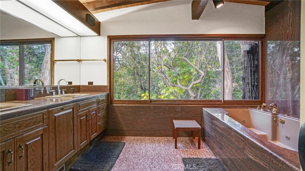 Behind private gates in Malibu, this elegant 3,448 sq ft, two-level estate offers exceptional privacy and resort-style living on impeccably landscaped grounds. The home features 4 bedrooms and 6 bathrooms and is serviced by a private elevator. The main level includes a bedroom, separate maid’s quarters, an attached pool house, and a dedicated laundry room. The gourmet kitchen features a center island and eating area, opening to a family room with fireplace. A formal dining room with fireplace and a formal living room with French doors lead to the lush backyard. Upstairs, the expansive primary suite offers an ensuite bath and two private offices. A secondary bedroom features its own ensuite bathroom. The serene outdoor setting includes a pool and spa overlooking a picturesque creek, creating a private retreat ideal for entertaining and relaxation. This gated Malibu residence combines luxury, privacy, and timeless appeal in a coveted location. Behind private gates in Malibu, this elegant 3,448 sq ft, two-level estate offers exceptional privacy and resort-style living on impeccably landscaped grounds. The home features 4 bedrooms and 6 bathrooms and is serviced by a private elevator. The main level includes a bedroom, separate maid’s quarters, an attached pool house, and a dedicated laundry room. The gourmet kitchen features a center island and eating area, opening to a family room with fireplace. A formal dining room with fireplace and a formal living room with French doors lead to the lush backyard. Upstairs, the expansive primary suite offers an ensuite bath and two private offices. A secondary bedroom features its own ensuite bathroom. The serene outdoor setting includes a pool and spa overlooking a picturesque creek, creating a private retreat ideal for entertaining and relaxation. This gated Malibu residence combines luxury, privacy, and timeless appeal in a coveted location. Walking access to the beach. Deeded access to private tennis court
